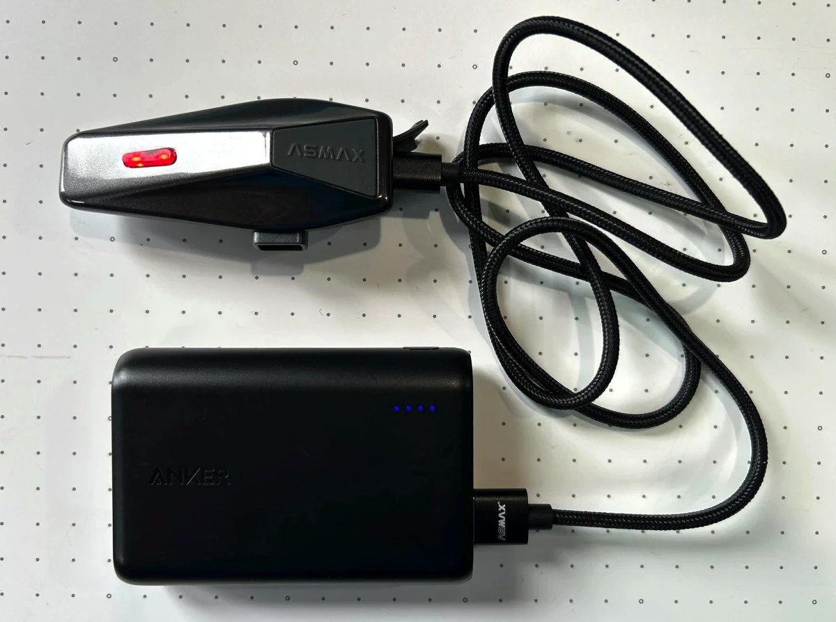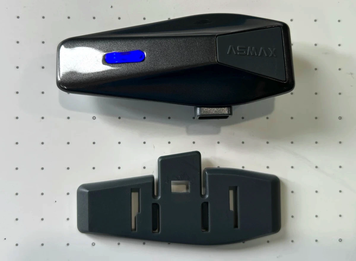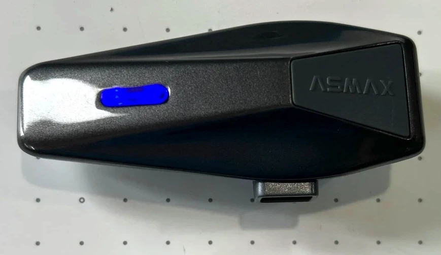 ちなみに表面にはLEDインジケーターと「ASMAX」のロゴが記された操作ボタンが設置されており、実はLEDインジケーターもひとつのボタンとして機能しています。