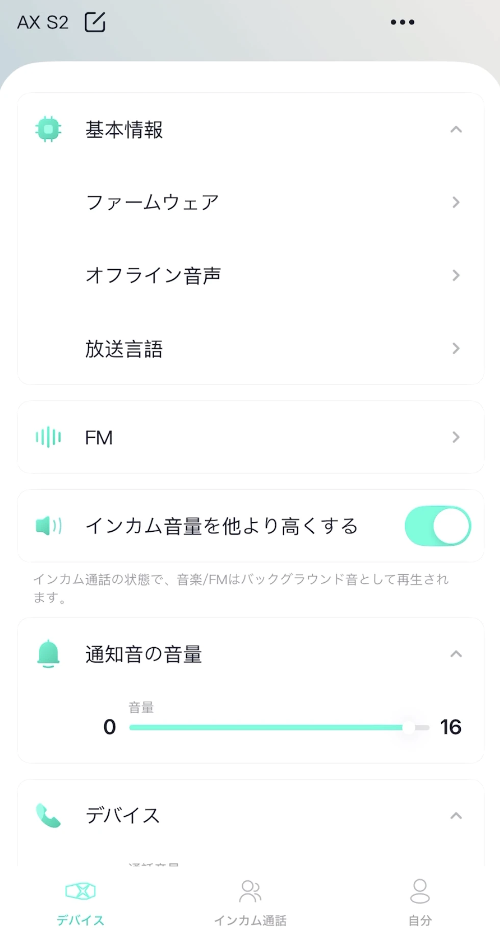 例えば先に紹介したインカムモードの設定だったり、FMラジオのチューニングだったり、あるいは本体のソフトウェアのバージョンアップだったり、言語設定だったり…実に様々な設定がアプリ上で出来てしまいます。