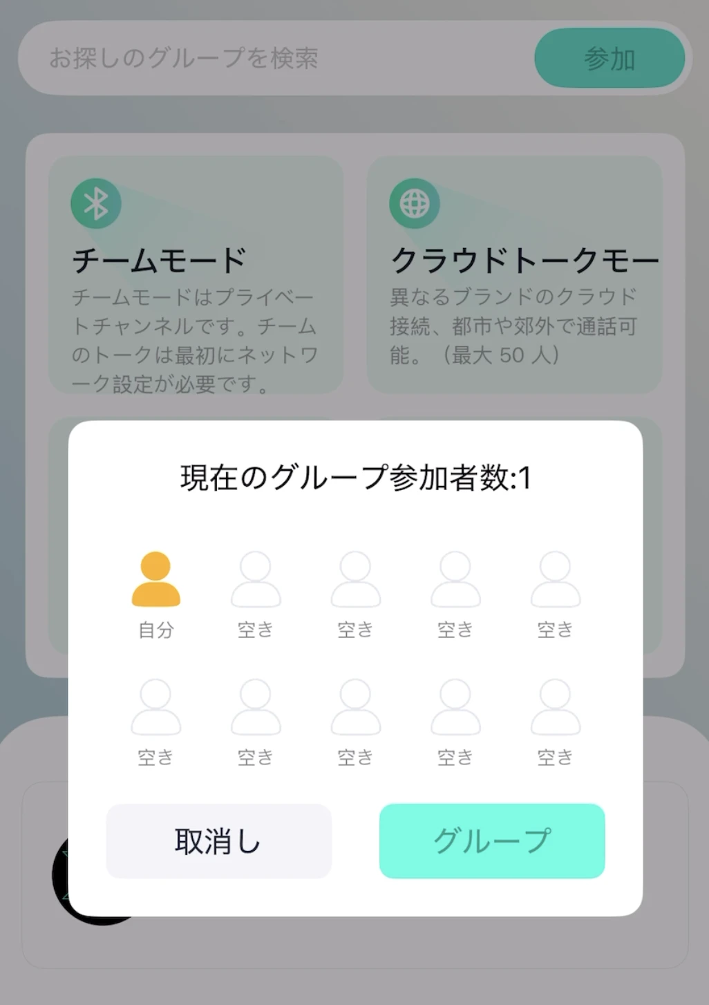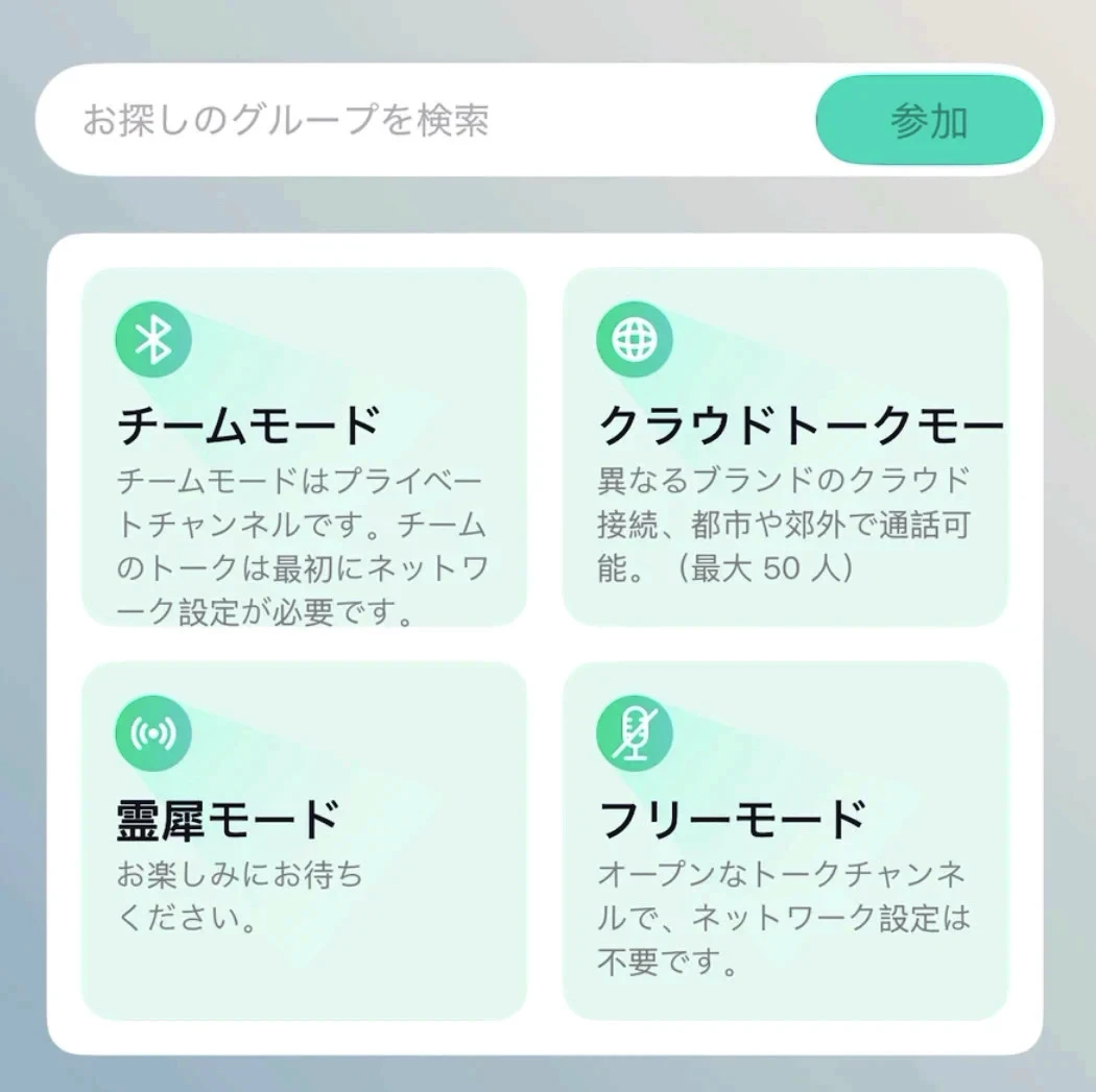 なお、フリーモードではBluetoothの範囲内で最大8人までの通話、それからチームモードではMESH接続による最大8人までのプライベート通話、それからインターネットを駆使したクラウドトークモードではなんと!距離無制限で最大50人との通話!が可能となっています…って、今さりげなく凄いことを言ってしまいましたよね…
