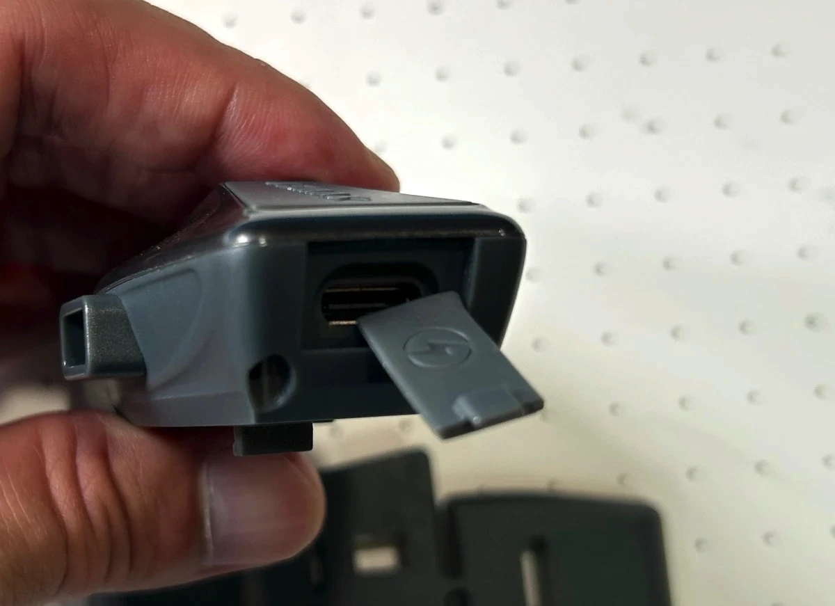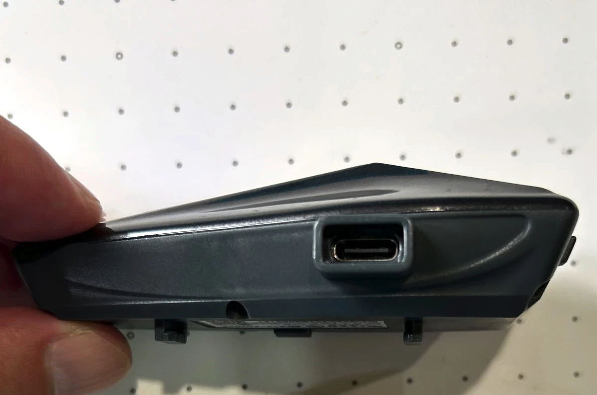 続けて本体の上部には音量のプラス・マイナスボタンが付いており、後ろ側には防水カバー付きの「USB TypeC 充電コネクタ」そして本体の底面にはスピーカーとの接続端子が備わっています。