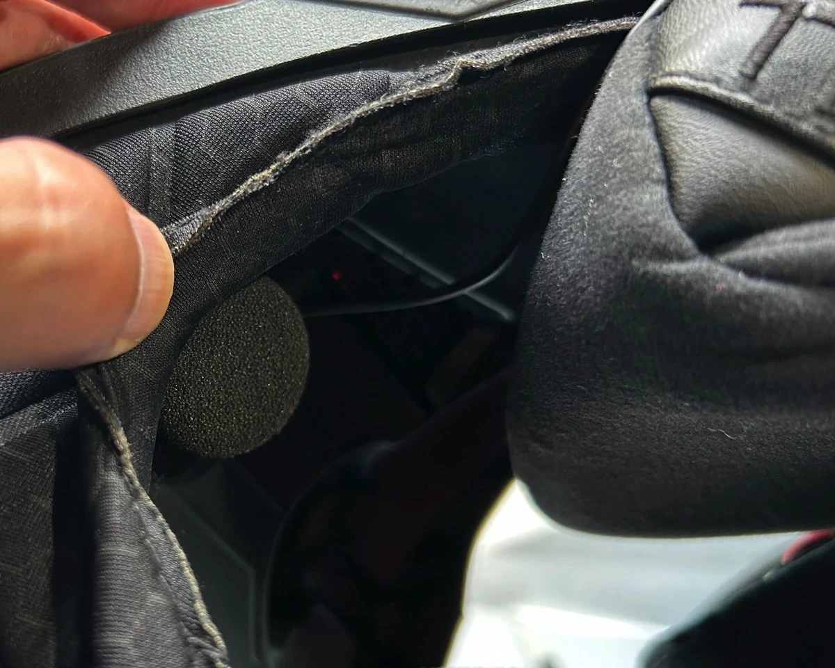 ヘルメット内部にスピーカーを設置します(本体にケーブルが届く範囲で)