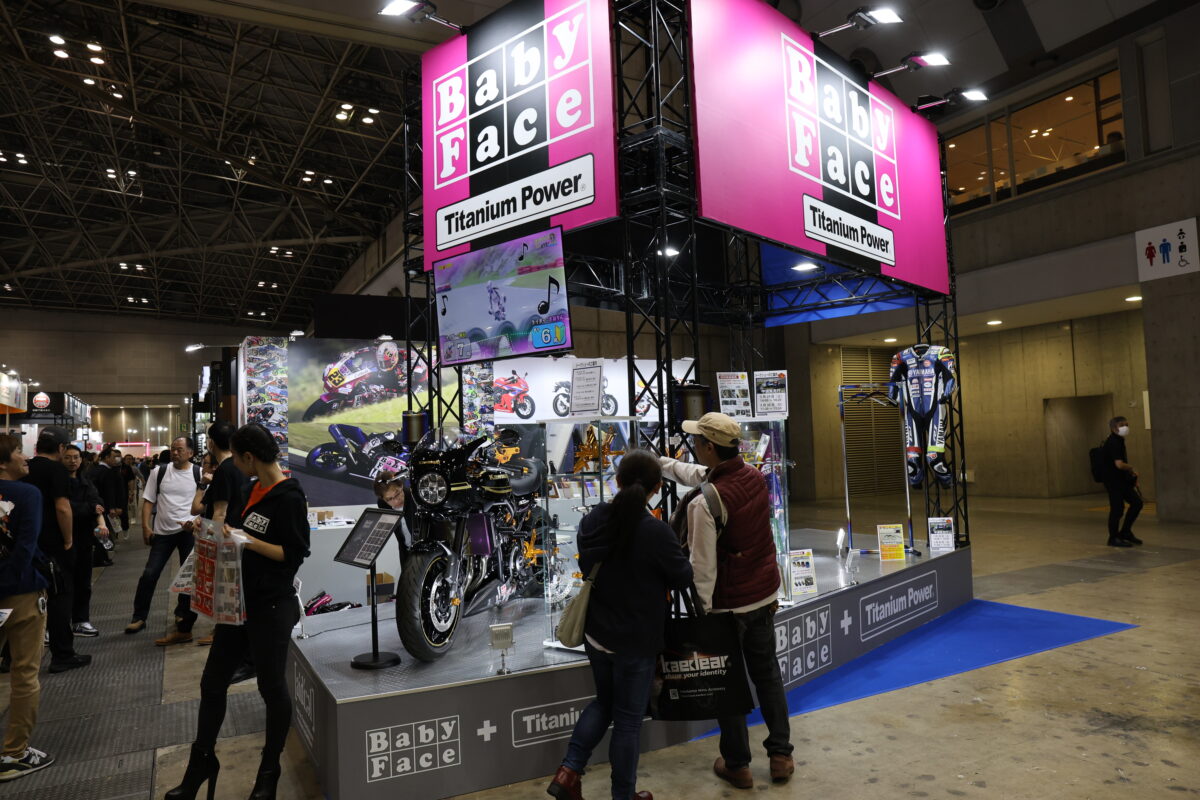 ベビーフェイスはアルミとステンの加工に強いメーカーだ。その上で、今年はチタン素材の取り扱いに強いオーファ/チタニウムパワーと共同出展となった。アルミ、ステン、チタンと憧れの金属素材が集まるブース展開となった。