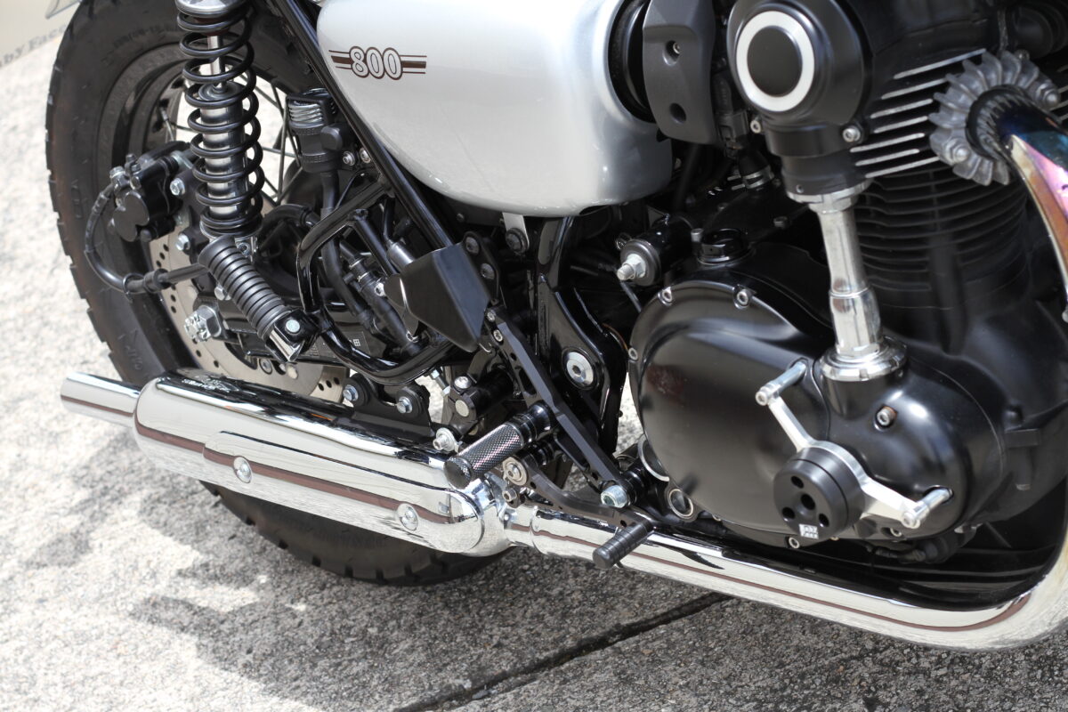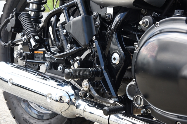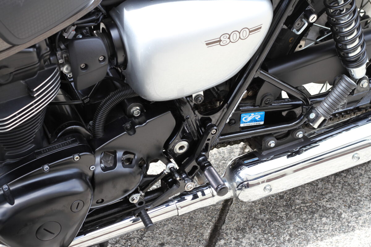 W800はリヤのマスターシリンダー、ブレーキスイッチがフレーム装着されているため、バックステップ化が難しい(多くの車種はフレームではなくステップに装着されている)。対してBabyFace製W800用 パフォーマンスステップはこれらのパーツを移設せずに装着できる構造になっている。
