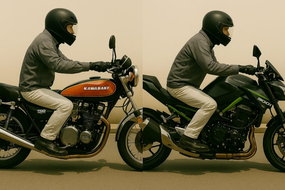 旧車と現行モデルのライディングポジション比較(イメージ)