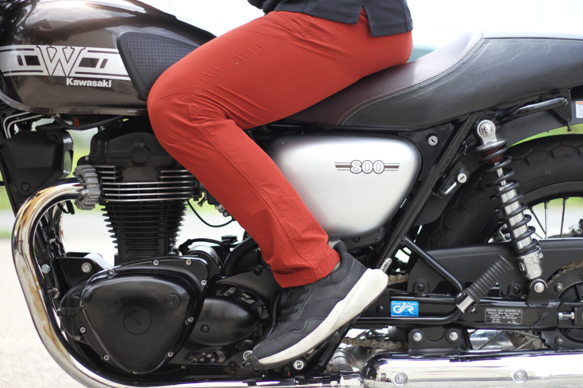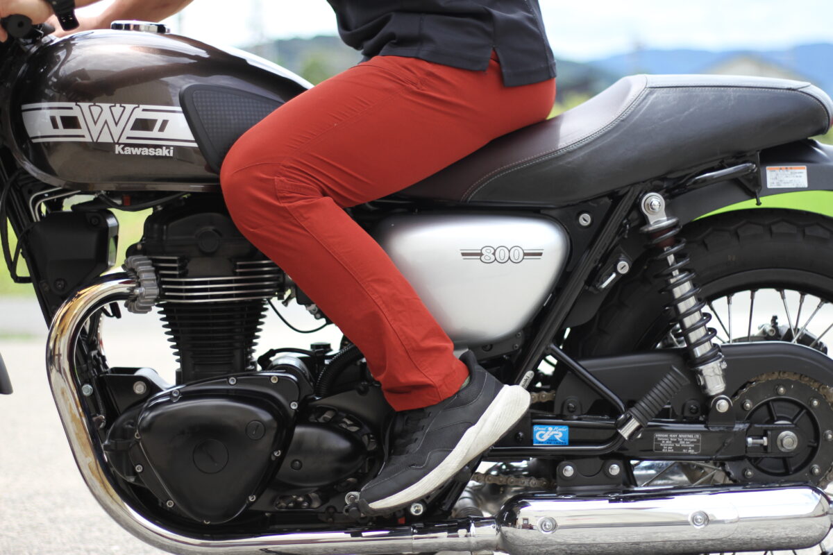ノーマルのW800は足を前に出した旧車らしいポジションとなっている。一見ラクそうに思えるが、長距離移動では尻(腰)に体重が集中するため体への負担は大きくなりがちだ。