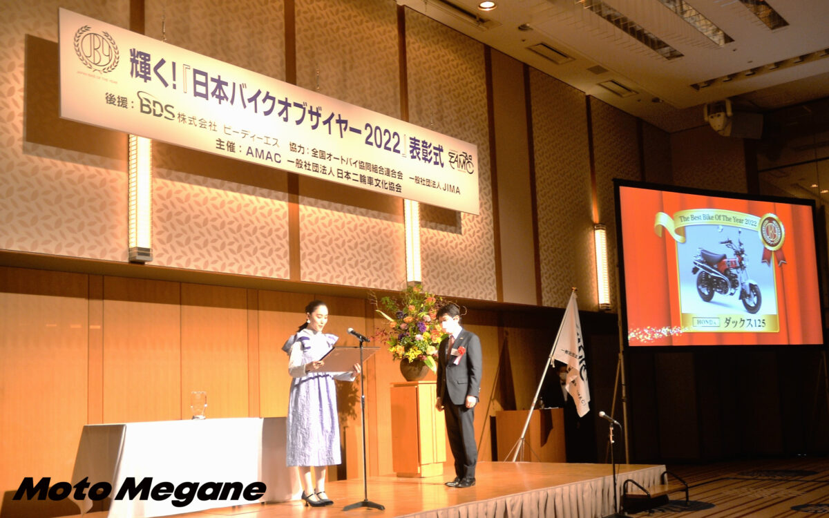 12月14日(水)に都内のホテルで「第5回日本バイクオブザイヤー2022」の結果発表と表彰式が開催された。この賞は一般社団法人・日本二輪車文化協会(AMAC)が主催し、その年に発売されたバイク車両を対象に、人気・機能・デザイン等に優れたバイクをWEBによる投票(一般投票)と審査委員による投票の合計ポイントで決定するもの。