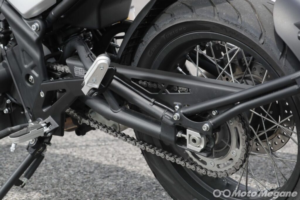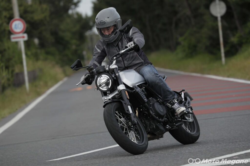 そしてハンドリングについてだが、前後17インチタイヤながらコーナリングではフロントがスッと内側に入るようなシャープなハンドリングとなっている。これは意に反して切れ込むということではなく、ライダーの意思に即座に答えてくれるといった領域でのシャープさというフィーリング。ブレーキングからの倒し込みが思わず楽しくなるような味付けになっていると言えるだろう。これもまたCROSSFIRE 500の魅力であり、毎日乗るのが楽しくなるはずだ。