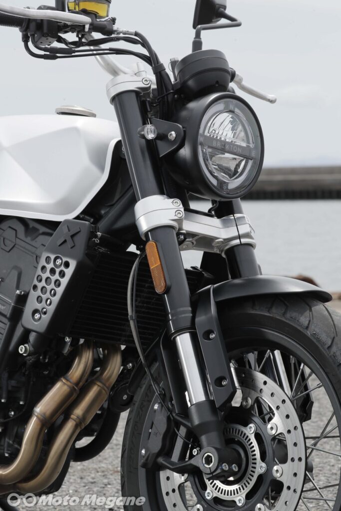 BRIXTONのラインナップの中でもクロスファイア・レンジはパフォーマンスを追求したモデルを設定。エンジンラインナップは500ccと125ccの2種類があり、500ccの方は水冷2気筒を搭載。125ccの方は空冷単気筒となっている。今回、この500cc水冷2気筒エンジンを搭載するモデル「CROSSFIRE 500」を実際に試乗し、その内容をチェックしてみた。