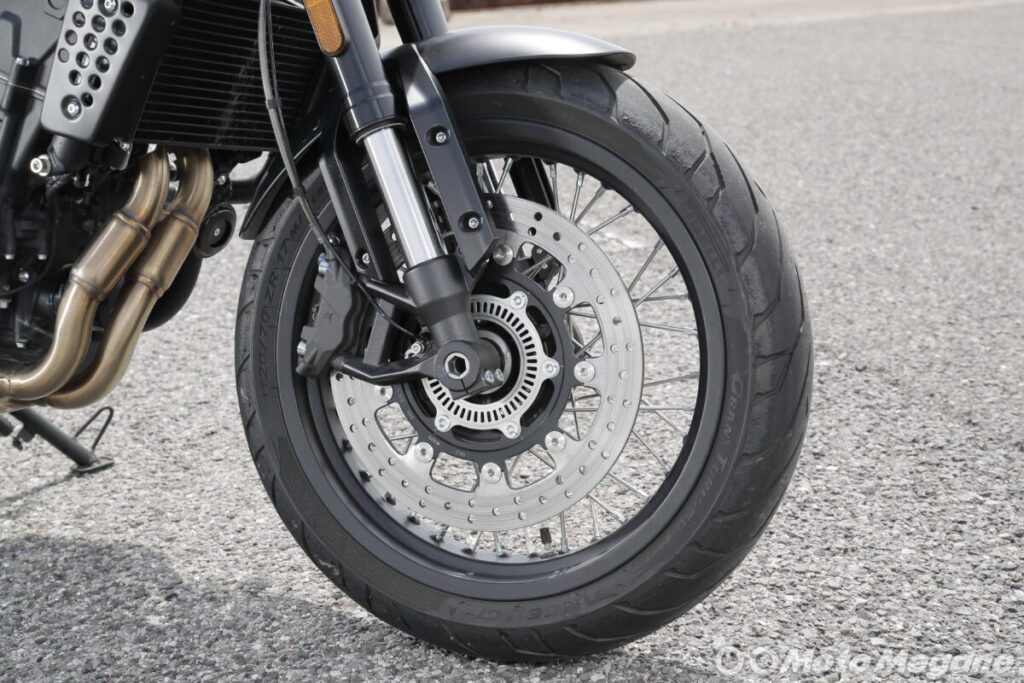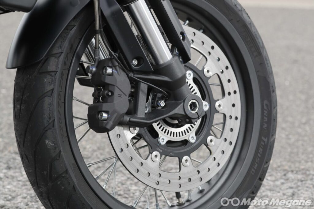 サスペンションは日本のKYB(カヤバ)製アジャスタブル・サスペンションが備わっているが、これが軽快なハンドリングに貢献していると思われる。段差をしなやかに吸収してくれるが、決して柔らかい訳ではなく、自然な動きをしてくれるといった感じ。しっとりとした乗り味を実現してると言えるだろう。加えてブレーキシステムは、スーパーバイクで知られるJ.JUAN製が備わっている点も注目だ。