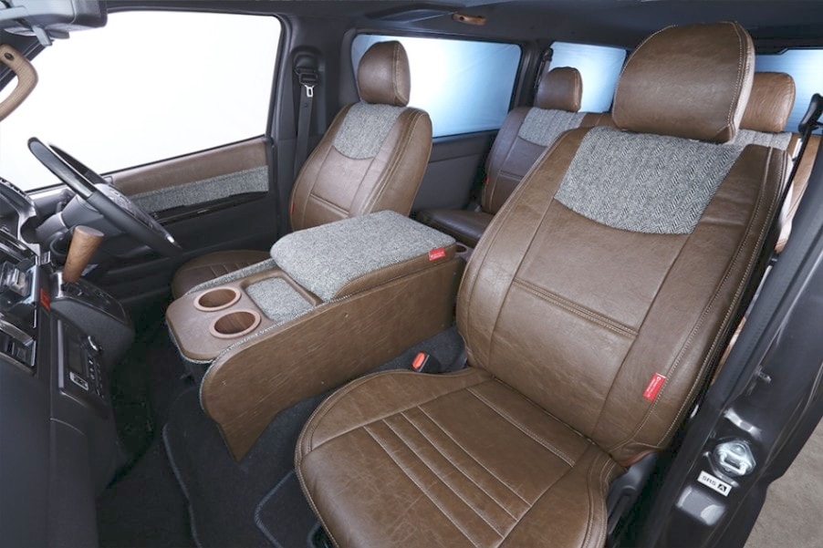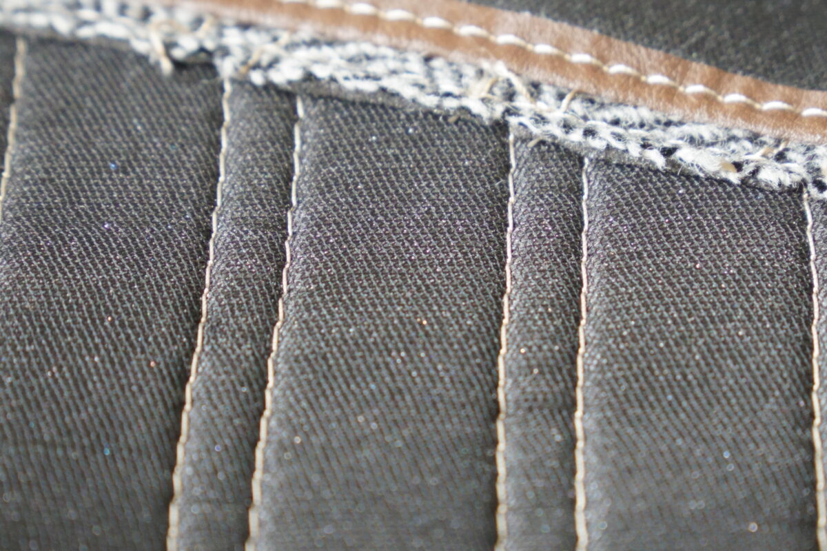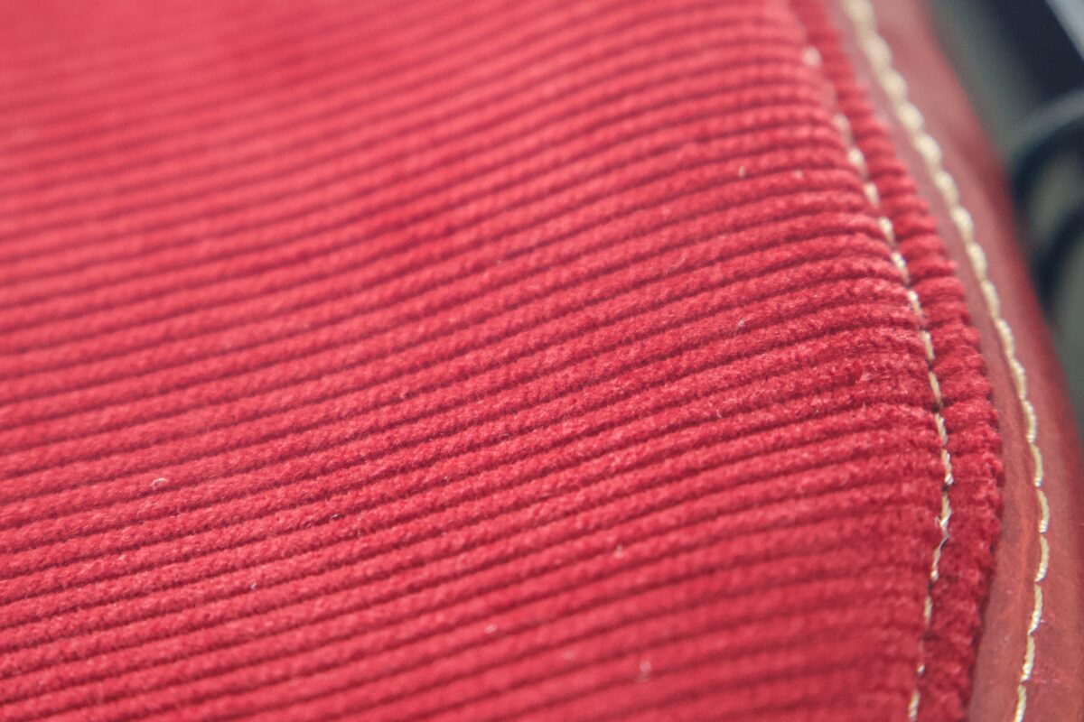 デザインは、トップ、マチ、リヤの3枚構成。3枚を縫製した生地構成とすることで、各生地の色の違い、素材の違いなどで多彩なバリエーションが生み出せる、手触りなどもまったく別物。シート本来の遊び方を数多く展開できるようにしてくれている。座面はクルマ用シートカバーで長年培ったデザインを踏襲し、純正が1本ステッチで味気ないところをダブルステッチにするなど随所にこだわりを見せている。しかも安心のメイドインジャパンだ。
