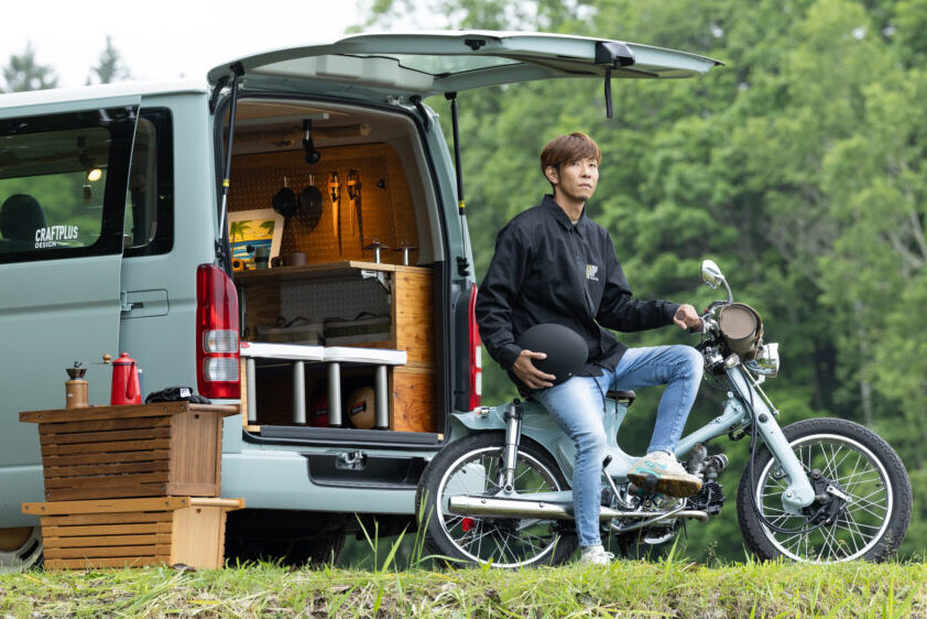 例えば、4輪のハイエースを同ブランドのシートカバーに変えて、その生地感と同じ仕様、同じ色味になっているシートのバイクが積まれていたら、それを考えただけでも車内に広がる光景にワクワクしてくるはず。4輪+2輪の統一感が生み出せるというわけだ。もちろんシートカバーのデザインはバイクの純正カラーを考慮して考えられているため、バイク単体での佇まいがオシャレなのは言うまでもない。