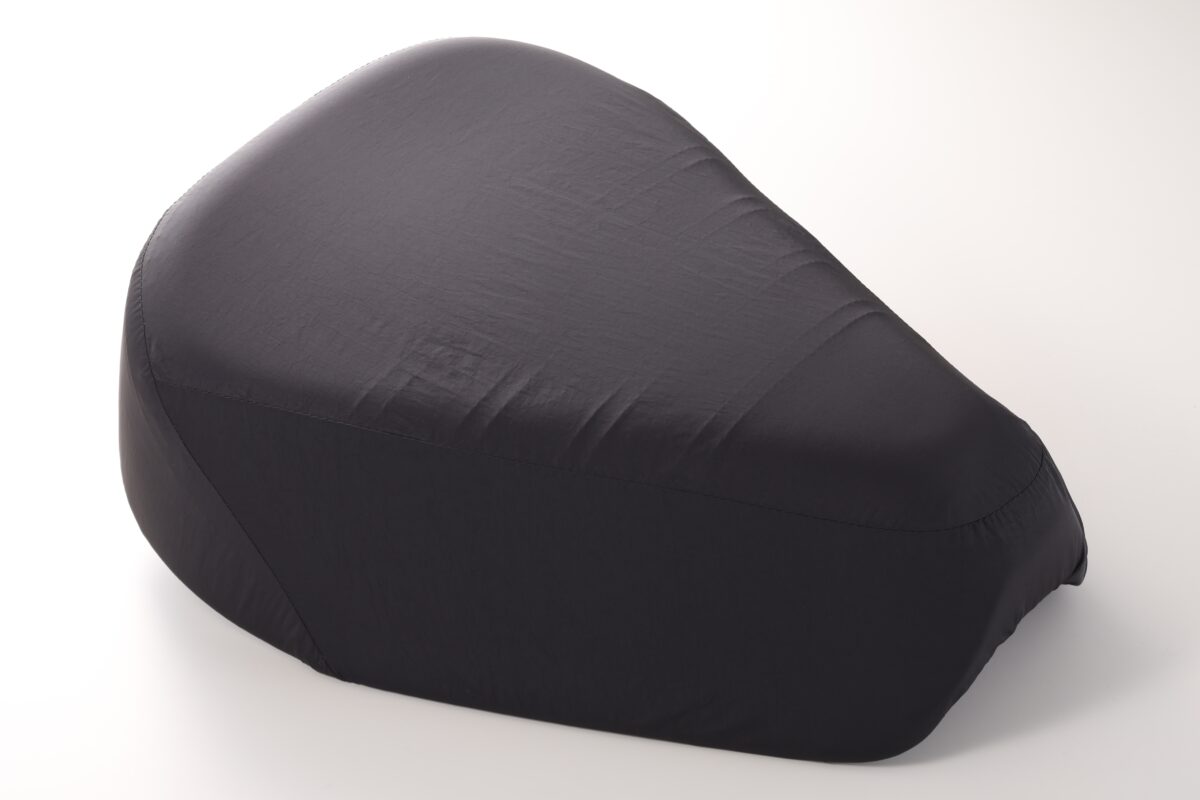 これにはシートカバーにフィットする専用のレイン用カバーを付属させることで対処している。雨天時や外ではこちらのカバーを使用すれば保管も走行も可能だ。傘の生地を使用した素材のため雨天時も安心。ツーリング時などでは携帯しておくといいだろう。
