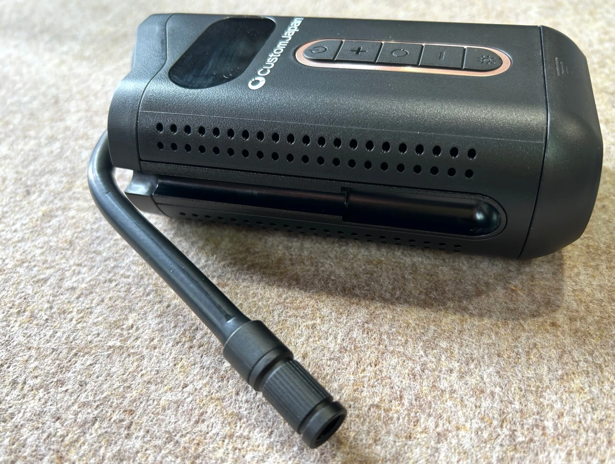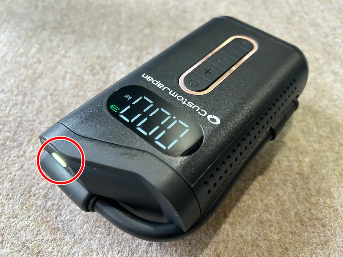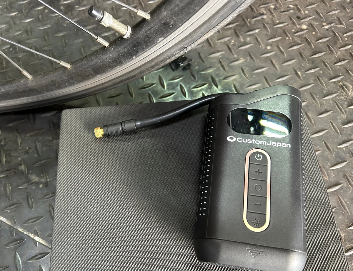 なので、使いたい時にすぐに持ち出せる大きさで、しかもバッテリー駆動でコンセント要らずで、空気圧チェックとエア注入ができるとか本当にありがたい限りです!