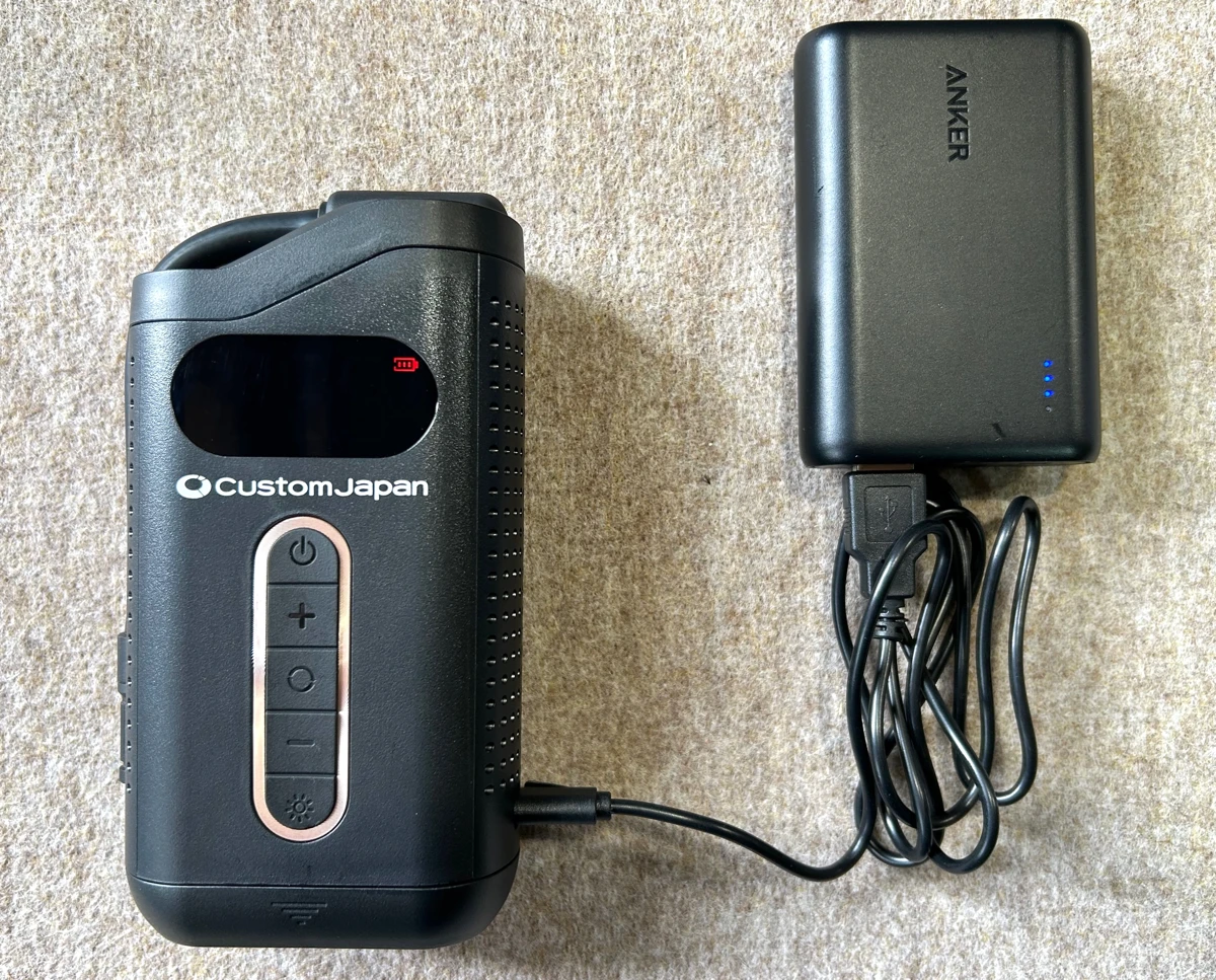 バッテリー駆動でモバイルバッテリー充電もOK!