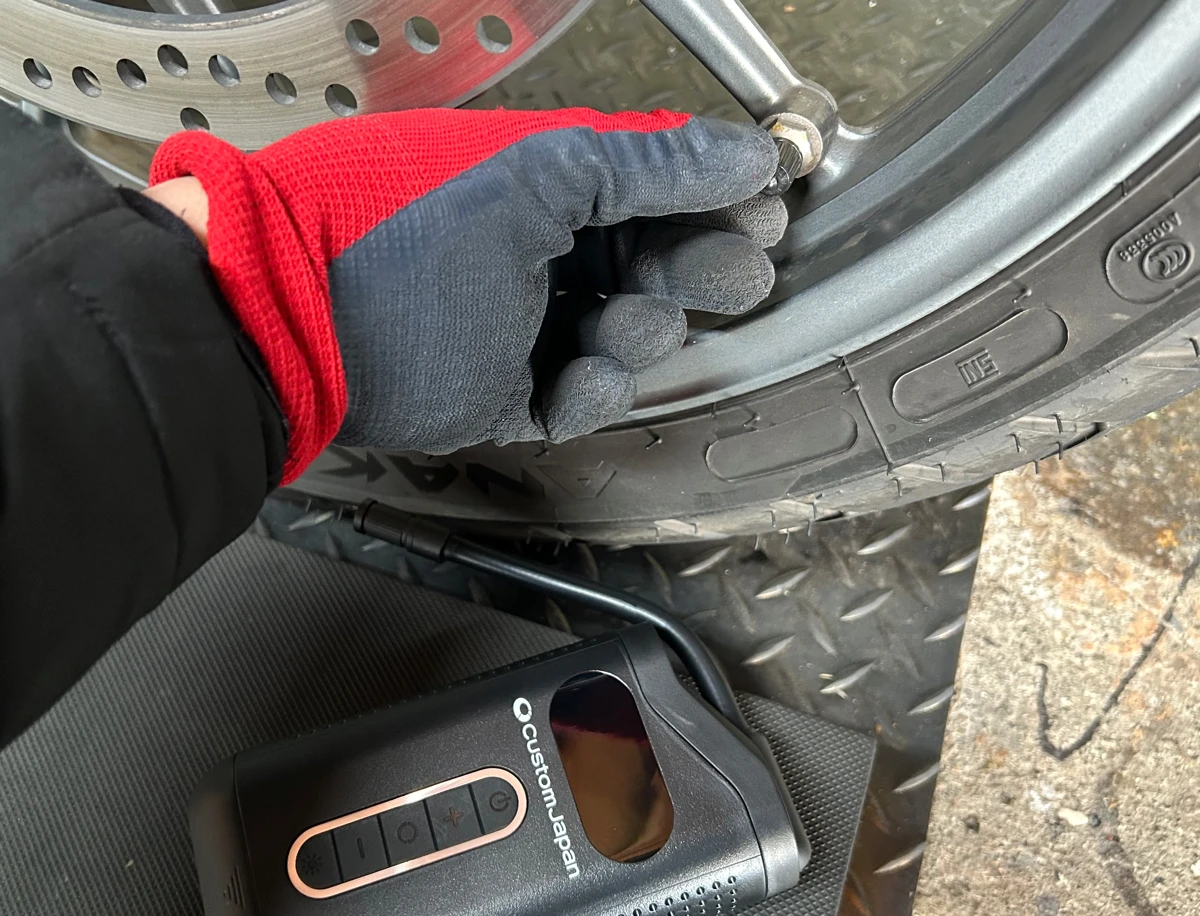 あとは設定した空気圧に達すると自動的に停止してくれるので、最後にホースを抜くだけで終了となります。