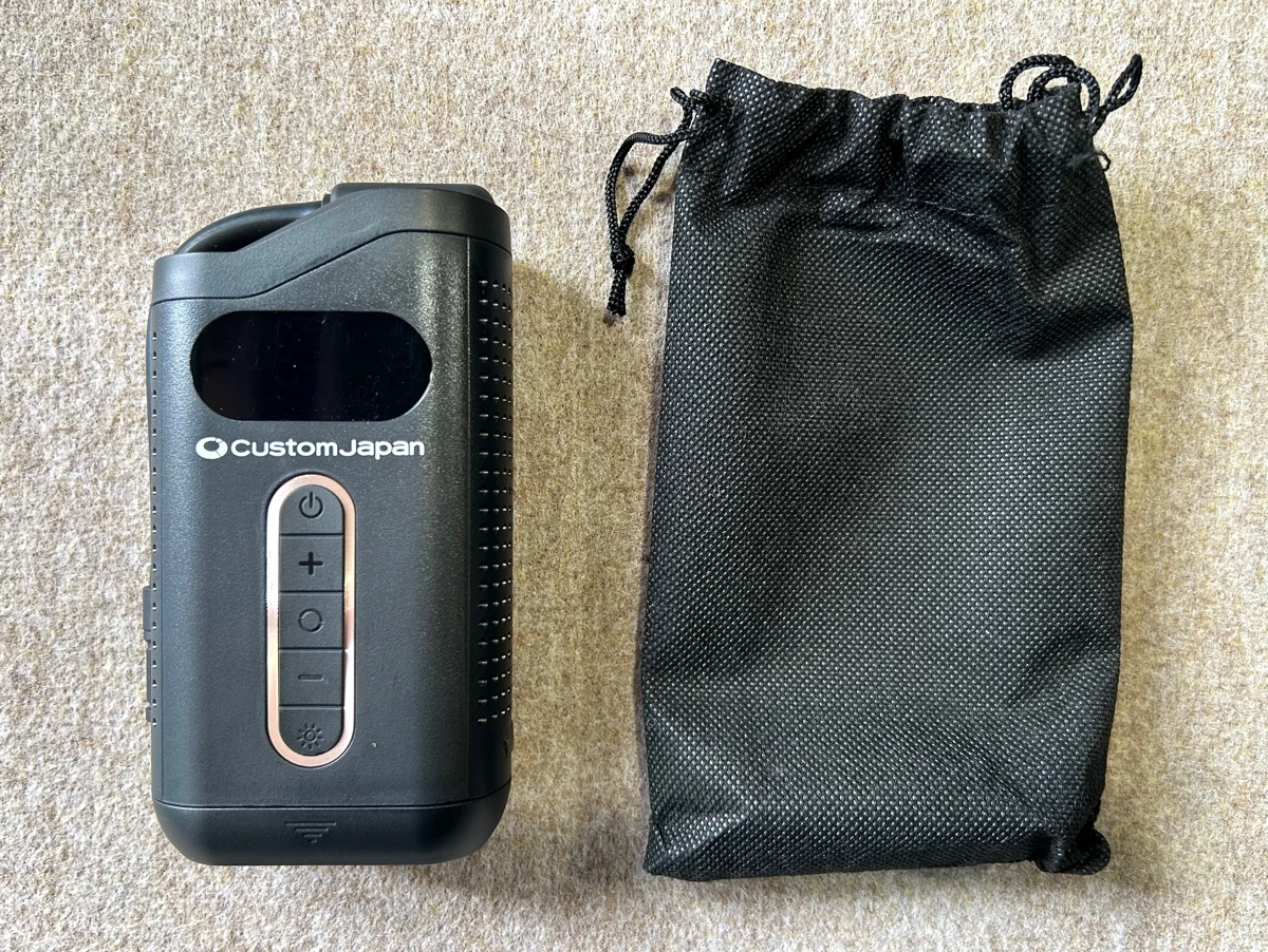 ってことで、早速その名前通りスマートなパッケージを開封すると、中から出てきたのは「本体、収納袋、充電用ケーブル、説明書」の4点でございました。
