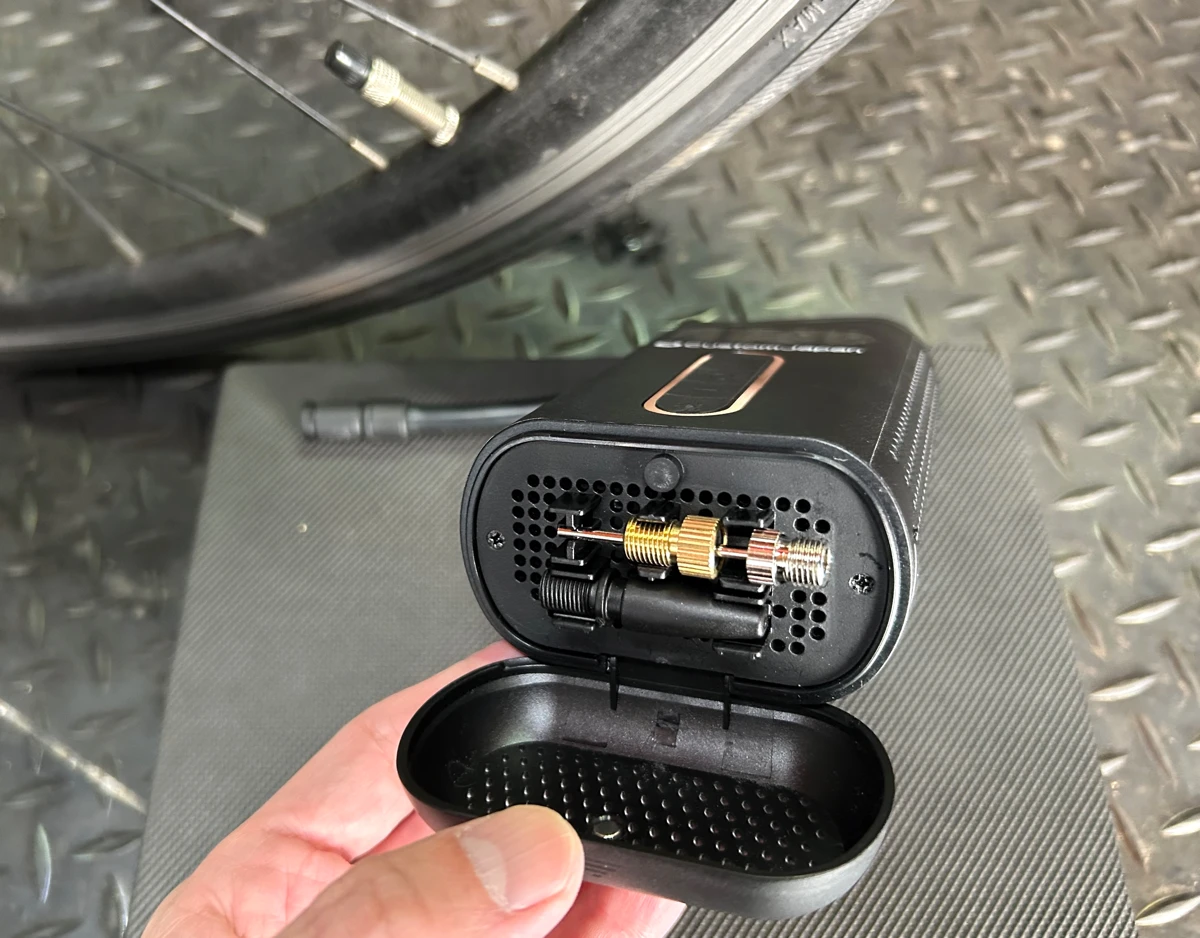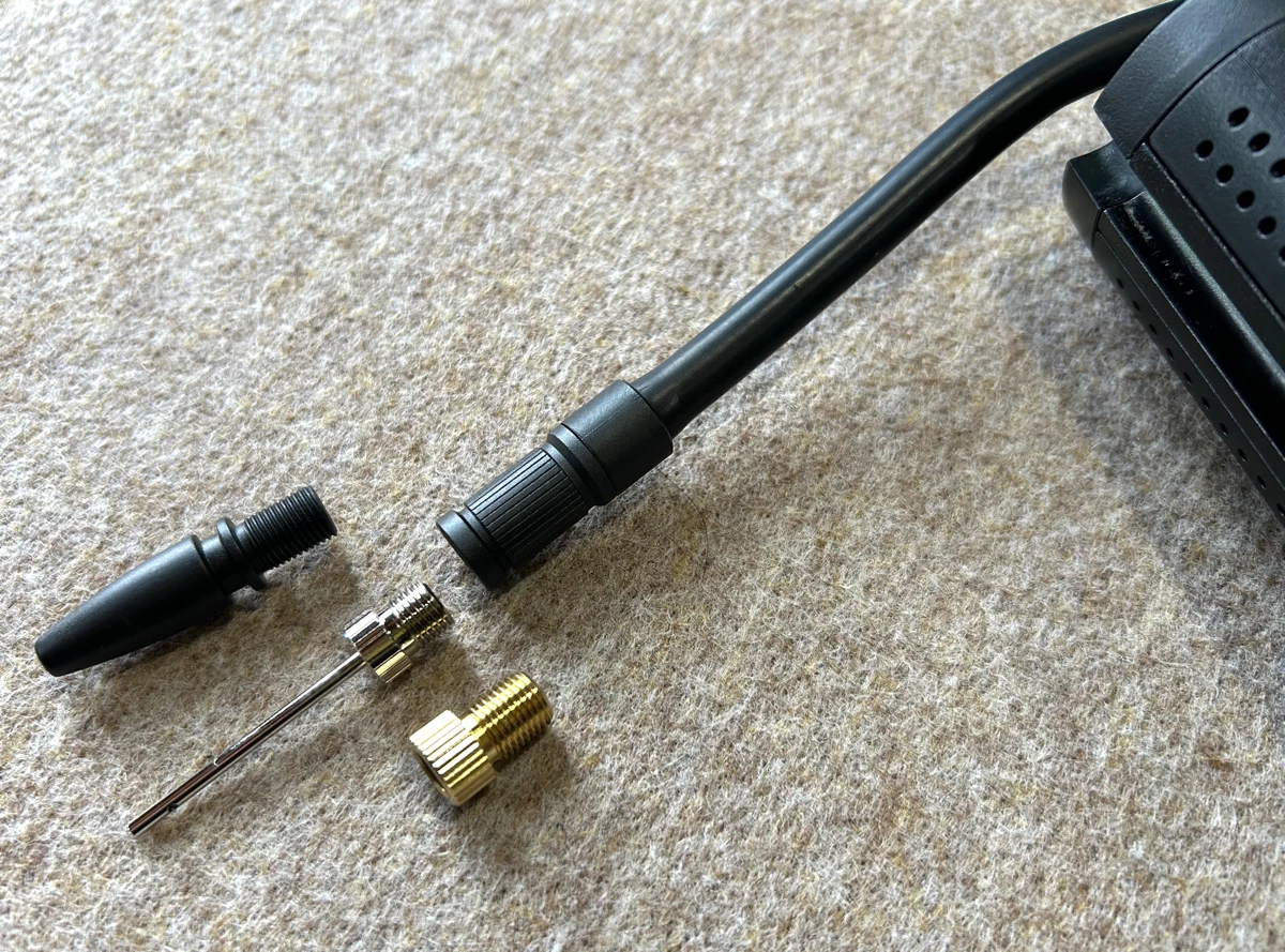 そしてさらに!これまた首がもげて飛んでいって、さらには宇宙の果てまで行ってしまうほどの納得の仕様があるんですが…例えば自転車とかボールに空気を入れる際は「それ用のバルブのアダプター(付属されています)」が必要なんですが、これが本体の下に収納されてるんですよね!