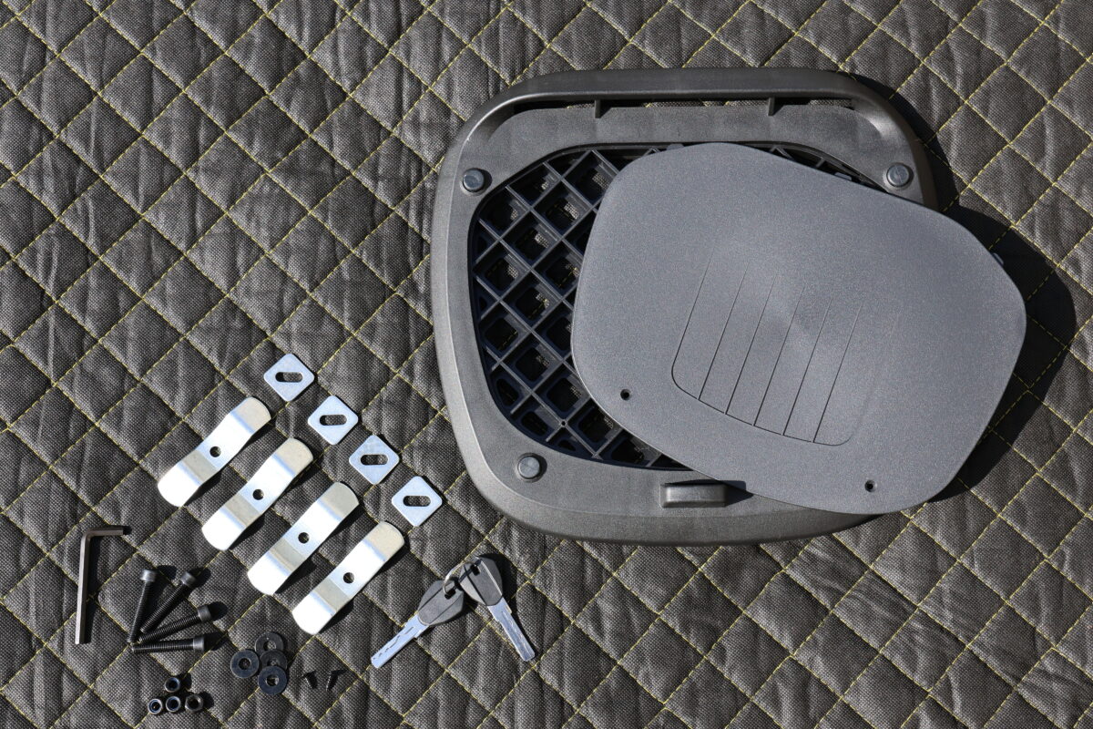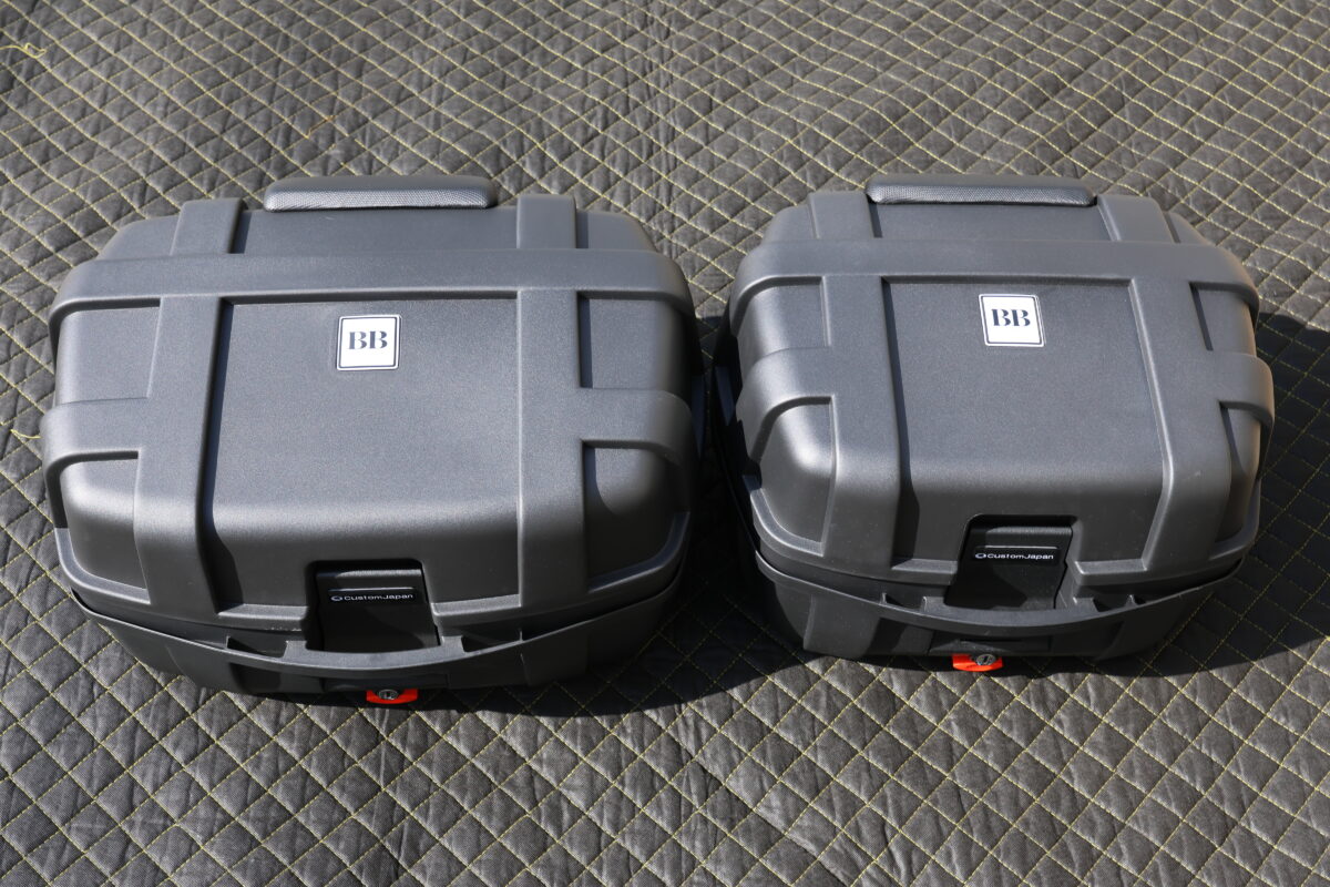 Amazonレビューの評価を確かめるべく実際に取り付けてみることにしよう。用意したのは50Lサイズの『モトボワットBB バイク リアボックス BB50ADV (50L)』。また、ワンサイズ小さい『モトボワットBB バイク リアボックス BB37ADV (37L)』とも比較してみよう。