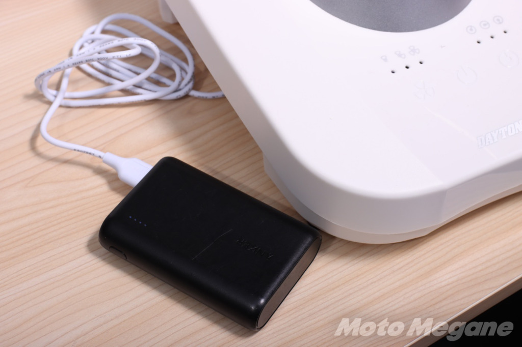 電源はUSBなのでコンセントの他、モバイルバッテリーからも取ることができる。