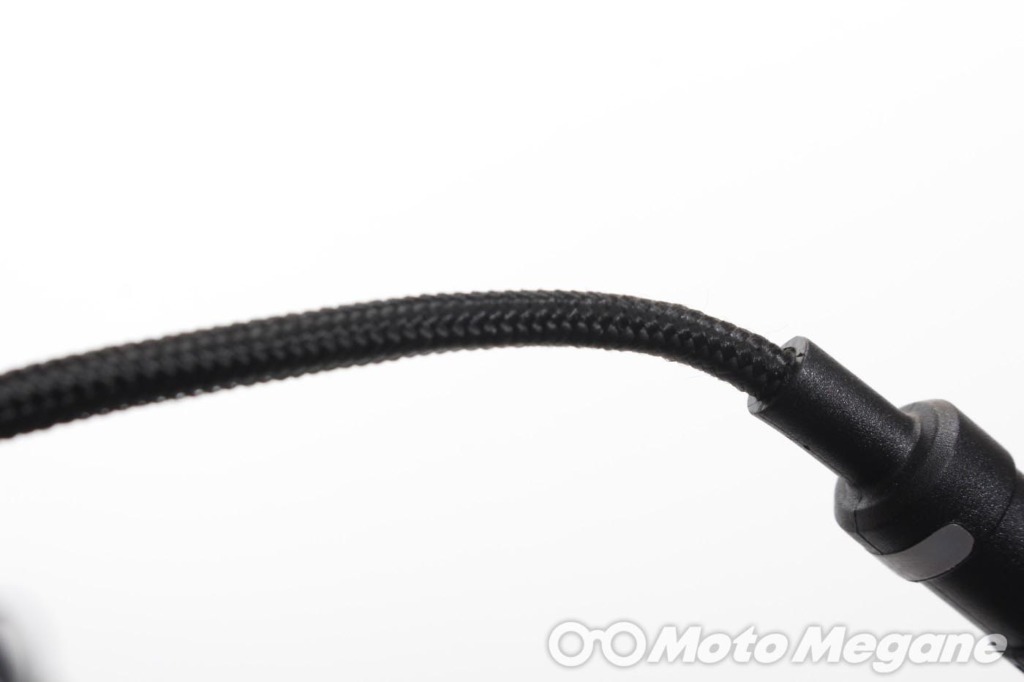 配線は布網カバー付きで、普通のビニールチューブ配線のように曲がりクセが付くこともない。柔らかいので、自由な取り回しが可能。