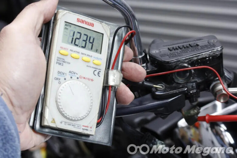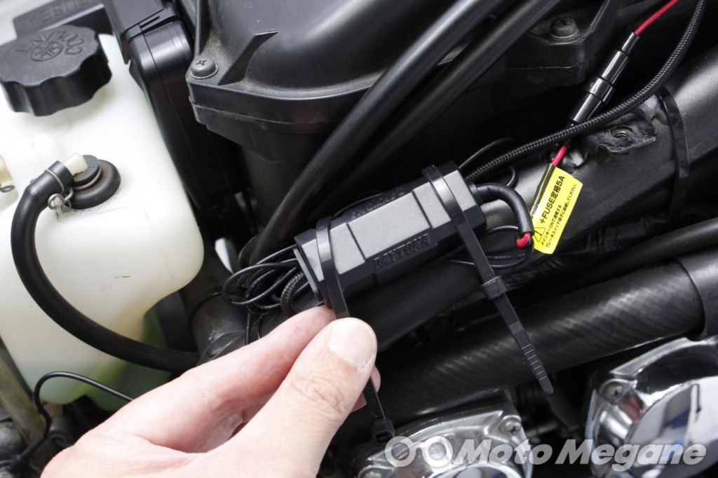 配線加工せずに電源確保するのに最もシンプルなのはバッテリーのプラス、マイナス端子に直接接続する方法だが、これだと、バイクのメインキーをオフにしても常に電気が流れることになるので、バッテリー上がりを招く要因となる。