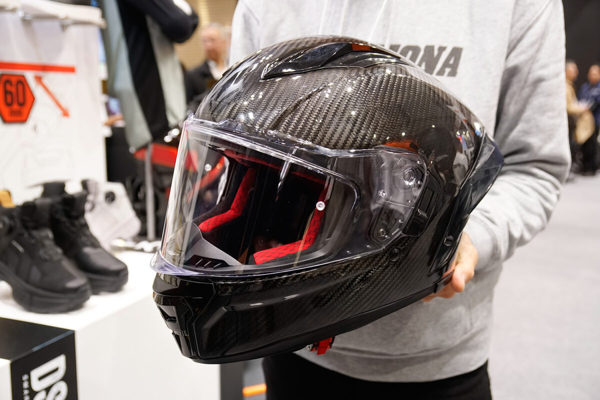 デイトナの新作オリジナルヘルメット「DN-011-RC」は、空力フォルムが生むスポーティな外観が魅力的なカーボンヘルメット。