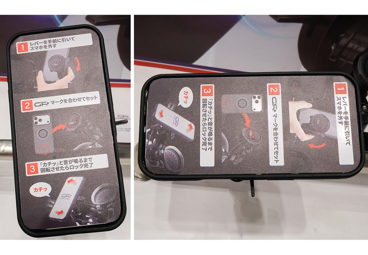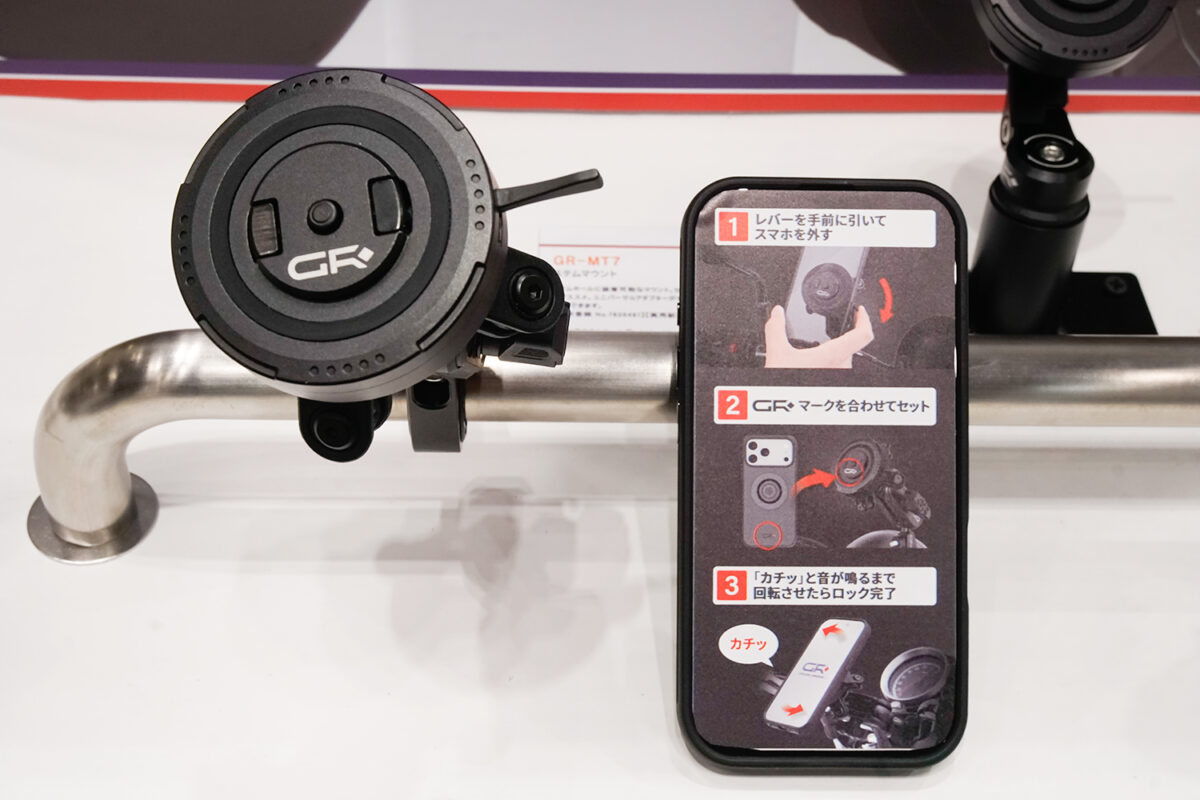 また、スマホホルダーに革新的な利便性と安全性を与えた磁気吸着式の「GRエクスプロアスマートフォンマウント」は、これまでの磁気吸着マウント×振動吸収ダンパー標準装備に加えて、充電モジュール付きマウントが登場。発売は6月頃予定とのことなので乞うご期待!