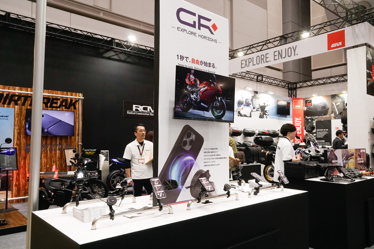 また、GRスマートフォンホルダーコーナーやドライブレコーダーMioシリーズの解像度2Kの最新モデルなどを展示したMioコーナーほか、各種ツーリングデバイスを実際に手に取ってチェックできるので、操作感などをじっくり確かめている来場者の姿が多く見られた。