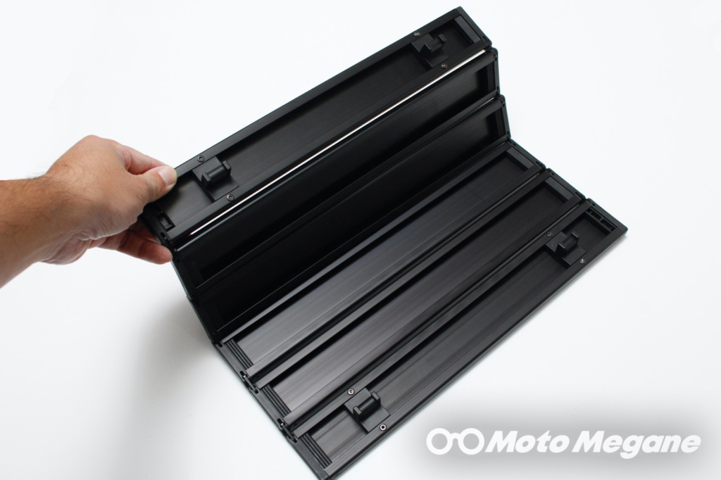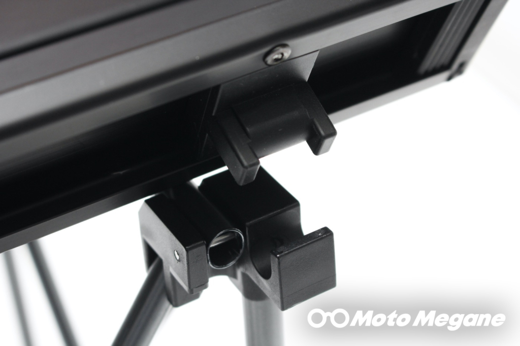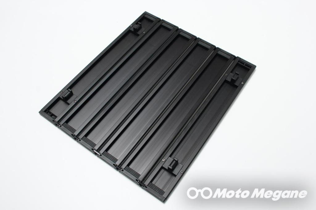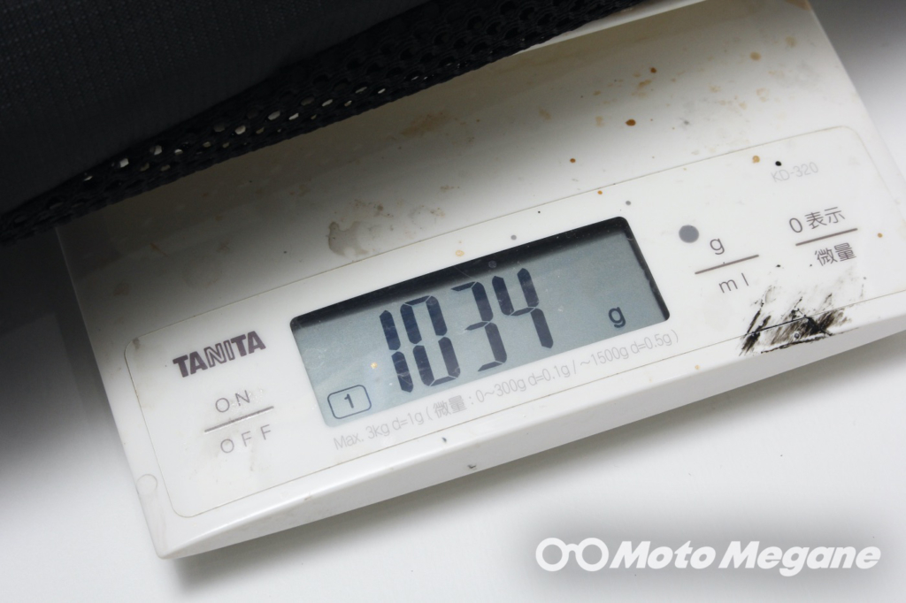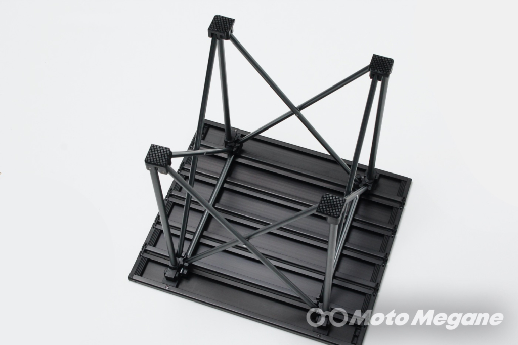 重量は実測1034kg。天板はアルミ製なので驚くほど軽い印象だ。ただし、軽すぎれば当然安定感が低下する。ただ、バイクで持ち運びすることを考えればこの重量は非常にありがたい。