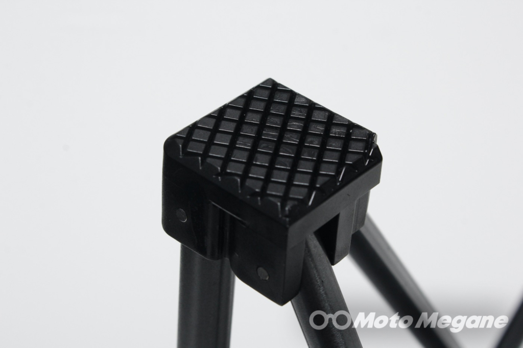 地面と接する部分には、樹脂パーツの滑り止めが付いている。また、設置も点ではなく面なので、ある程度柔らかい土地でもめり込んだりすることも無さそうだ。