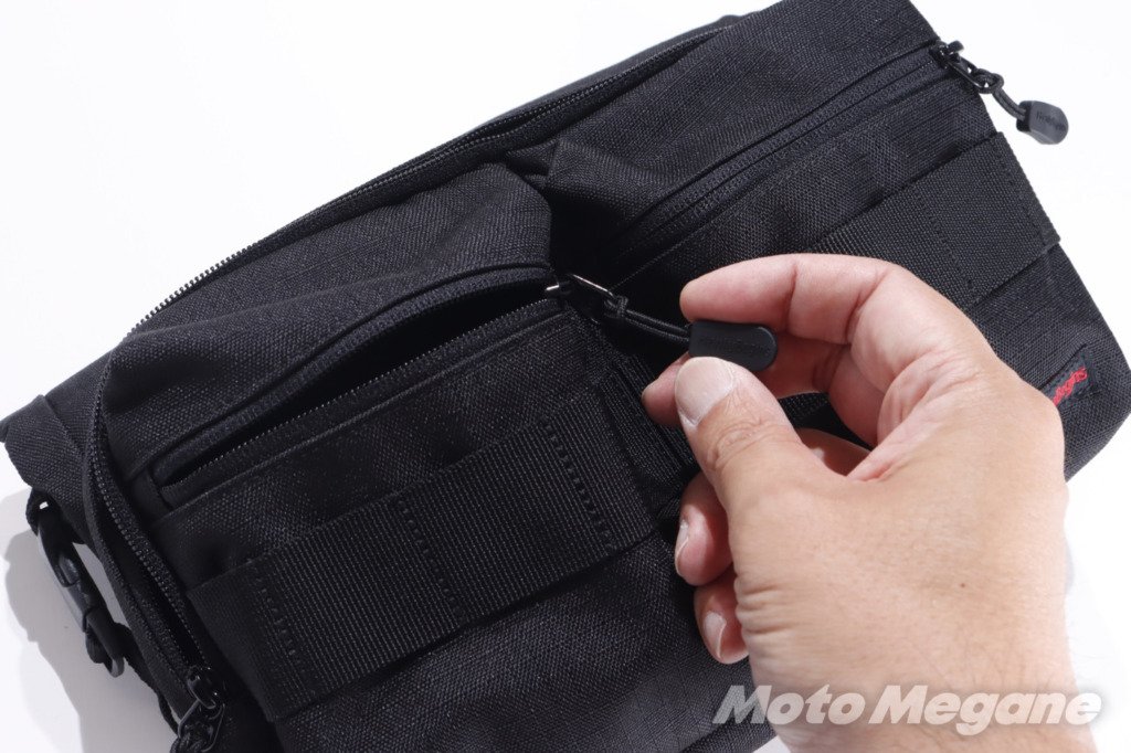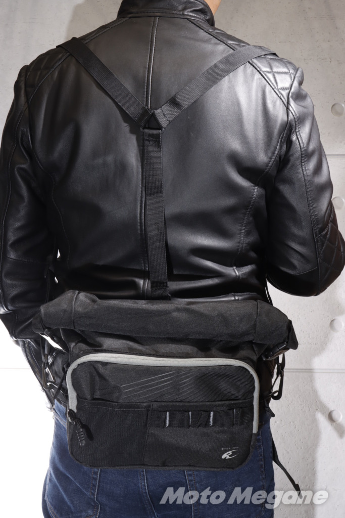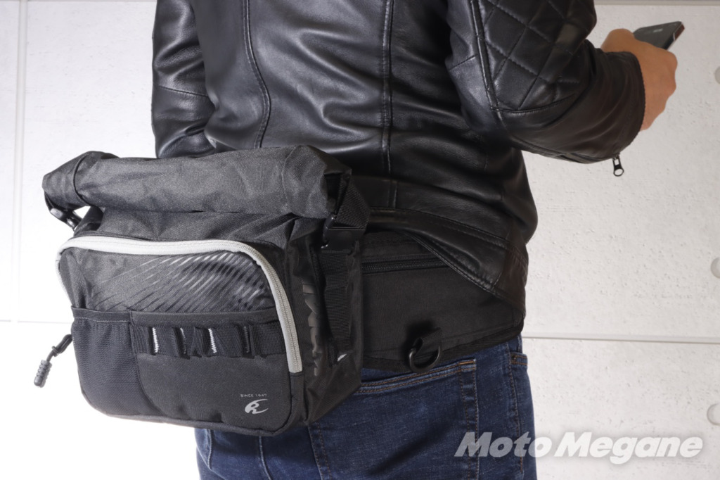荷物の多いツーリングの際も、身軽な日帰りツーリングや街乗りでも使うことができるし、バイクに乗っている時も、降りて休憩や食事をする時も常に貴重品を肌身離さず携行できるので、紛失対策としても有効だ。