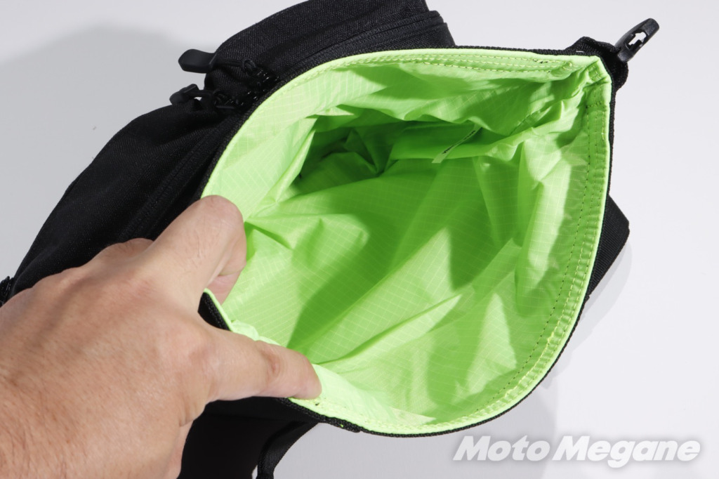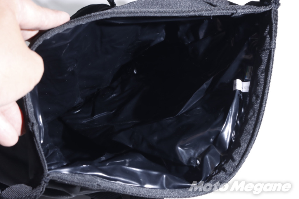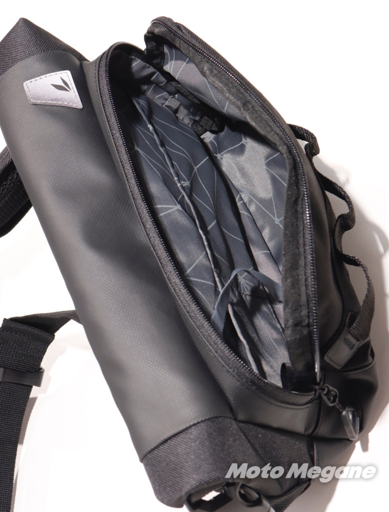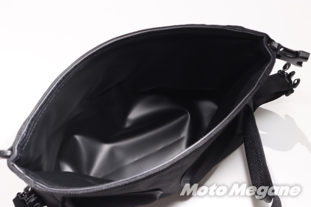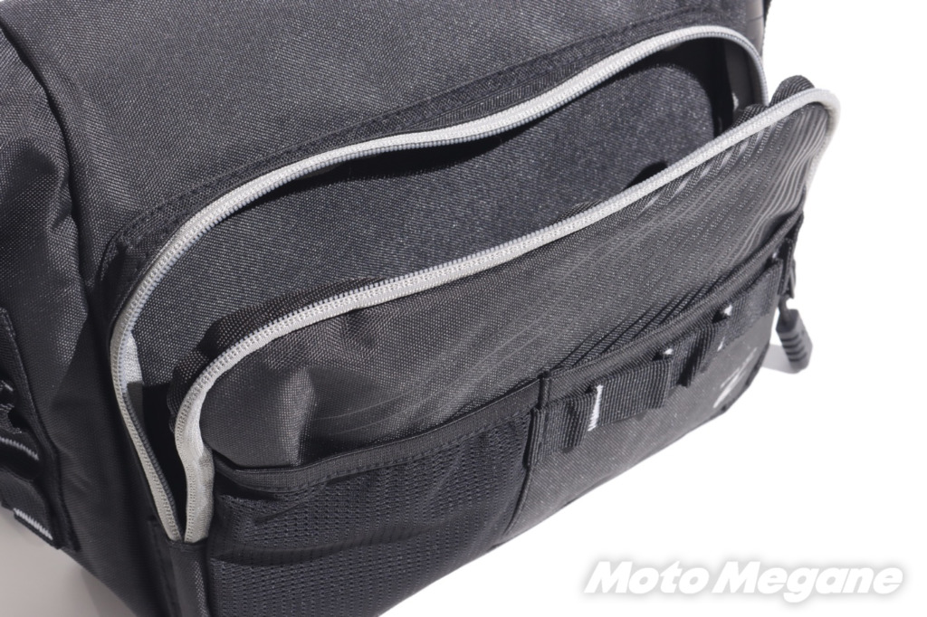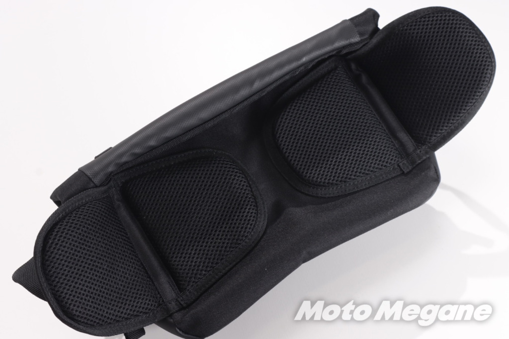 バッグ底面を防水素材で二重にしたり、夜間ライディングの安全性にも配慮した反射素材を各所に配するなど、細部に渡る完成度の高さが好印象だ。