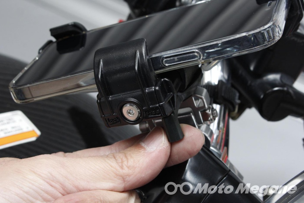 ロックレバーを倒して可動アームをロックすればスマホが走行中に脱落することはまず無いだろう。