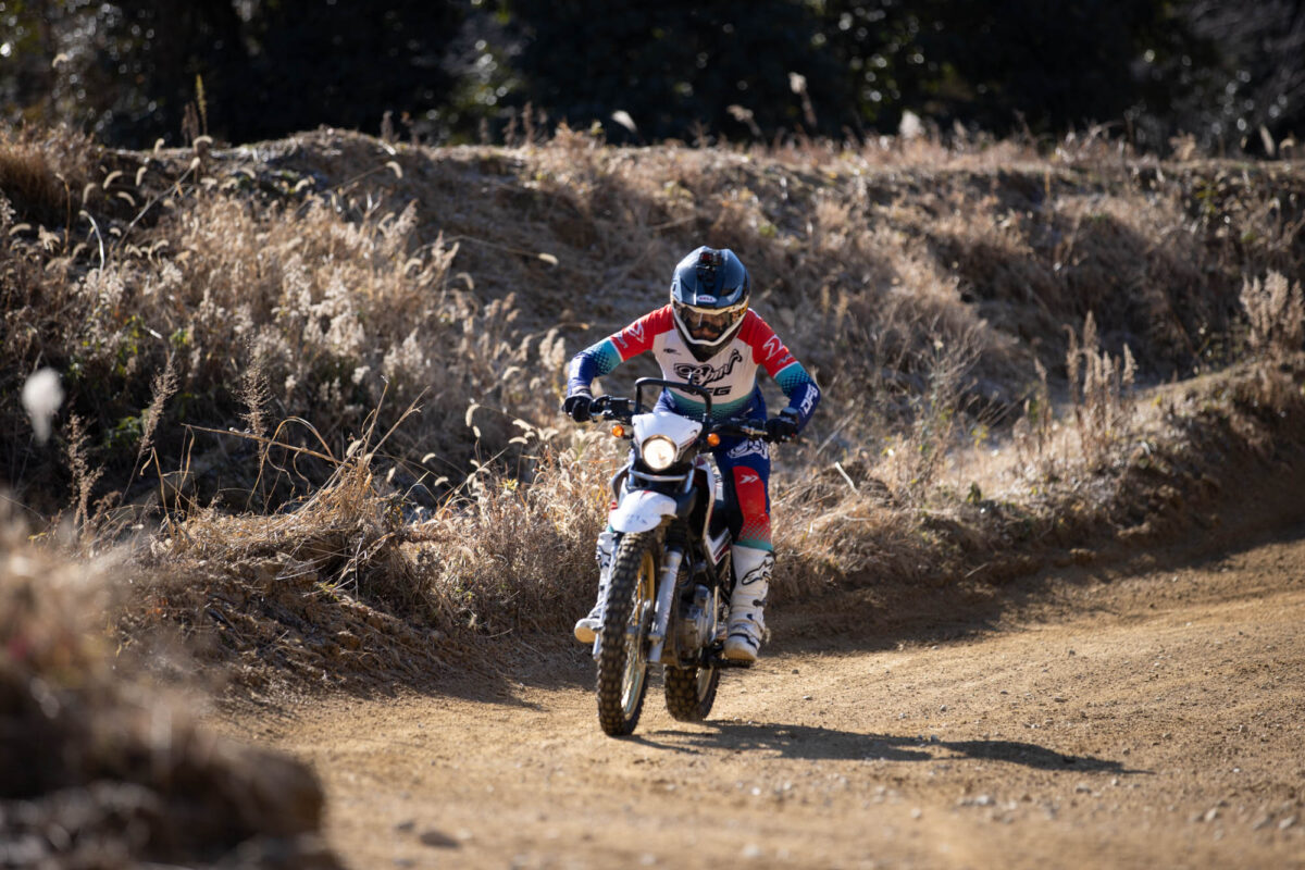 スラムパークを走行してみると、YZ250FXに比べて制動力の弱さが顕著に感じられました。特に、1本指でブレーキングをする際には、かなりの力を人差し指にかけなければならず、スロットルの操作に集中しづらいような場面もありました。