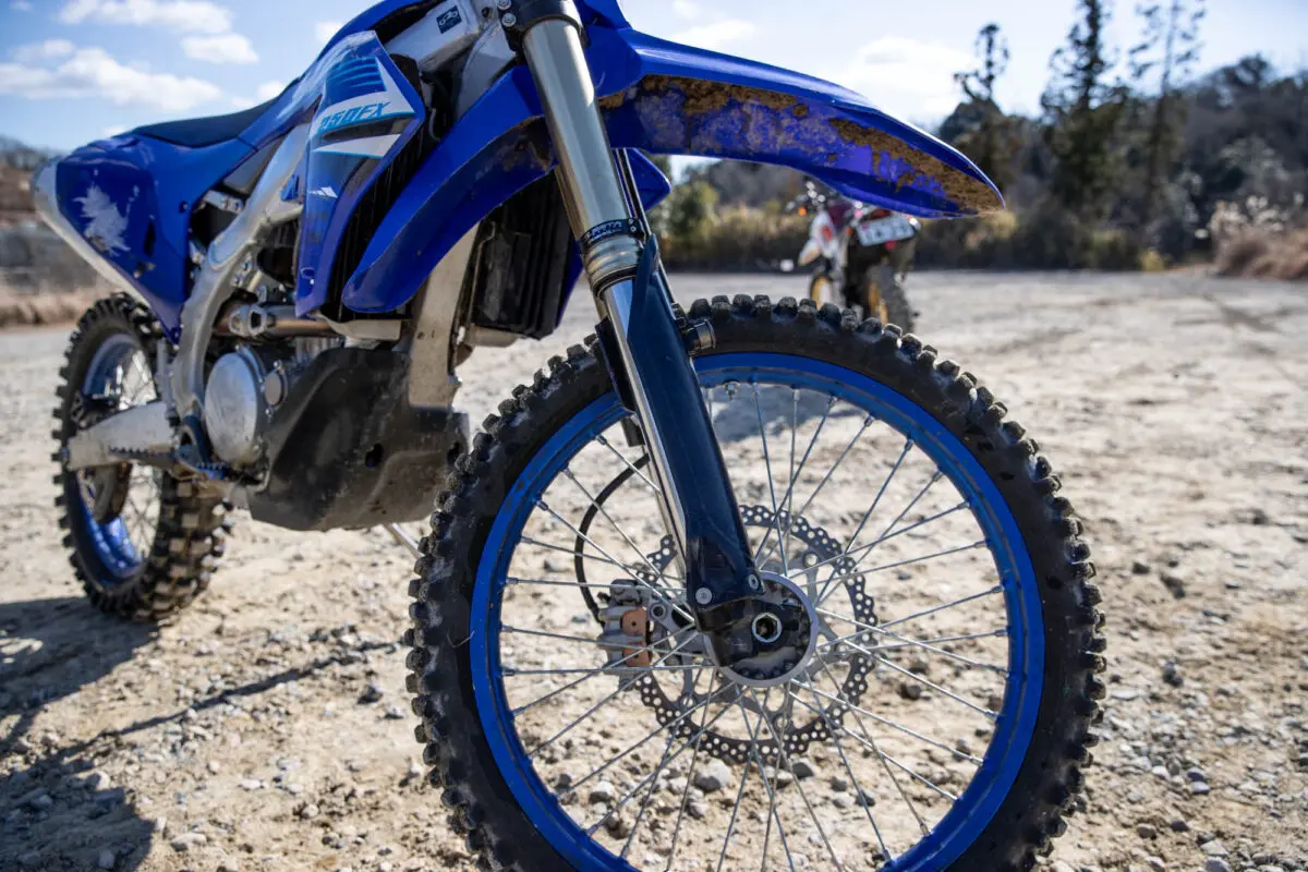 ジグラムパッド ダートシンタードに交換すると、わずかなタッチでも制動力が格段に向上しました。こちらは、YZ250FXで純正とダートシンタードを比較した際には出てこなかった感想です。レーサーのような鋭いブレーキングができるとまでは言いませんが、ライディングに余裕が出て、特に下りのギャップが連続するような場面では、安心してブレーキングできるようになりました。