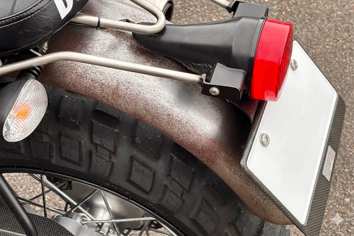 クラシック×カフェレーサー仕様。バーエンドミラー、ストレートハンドル、ブラックスポークホイール、ブラウンの専用シートを採用