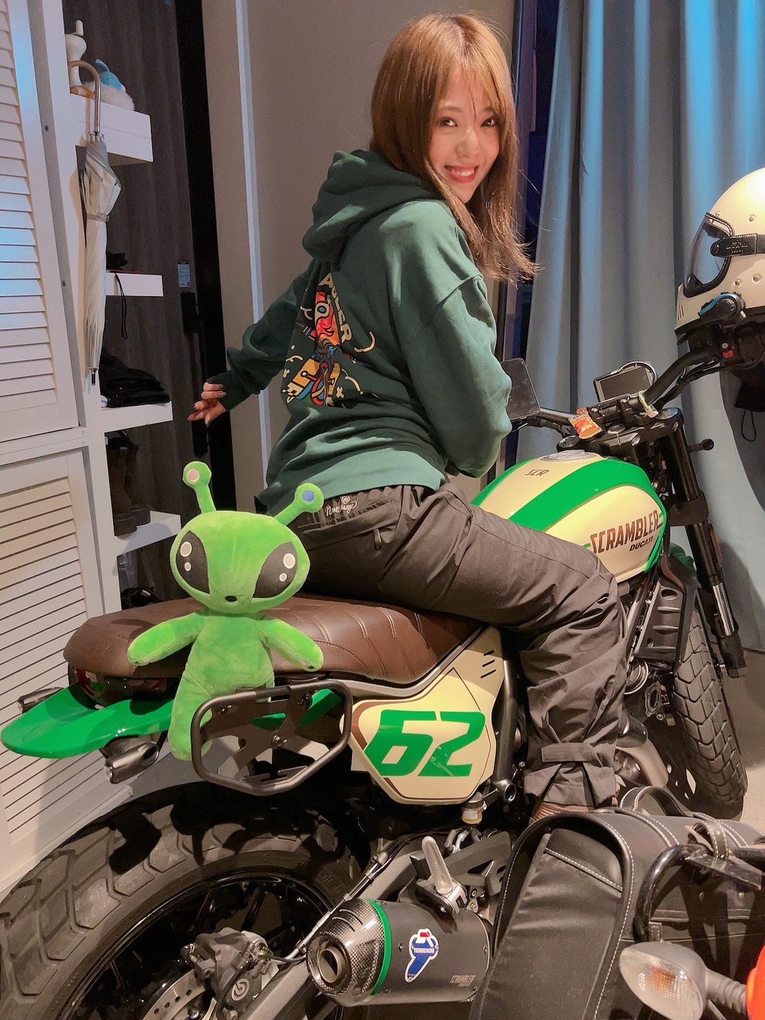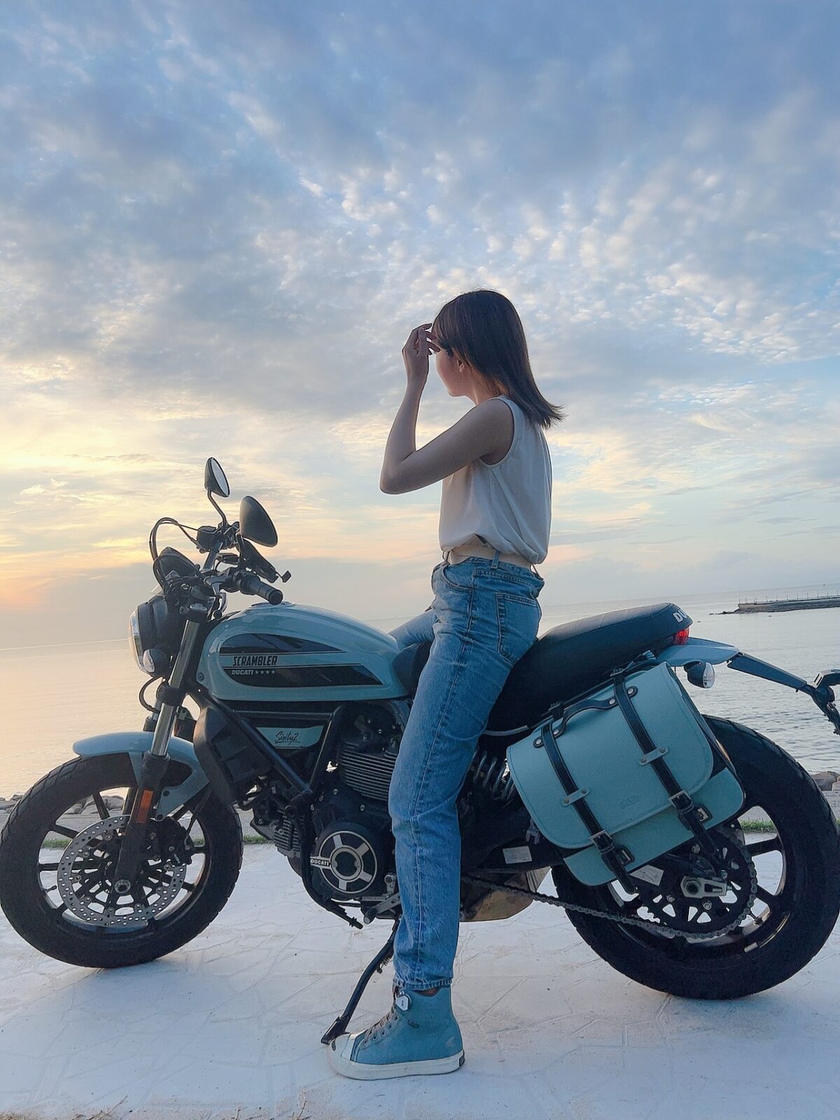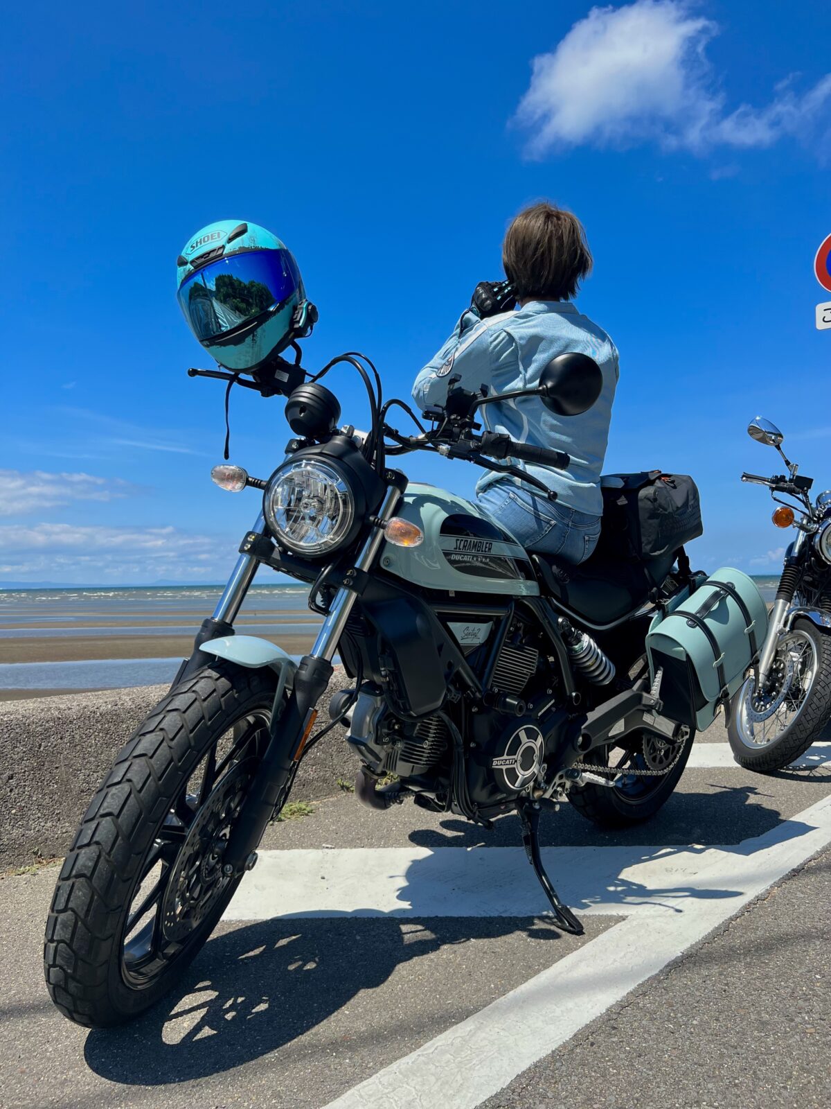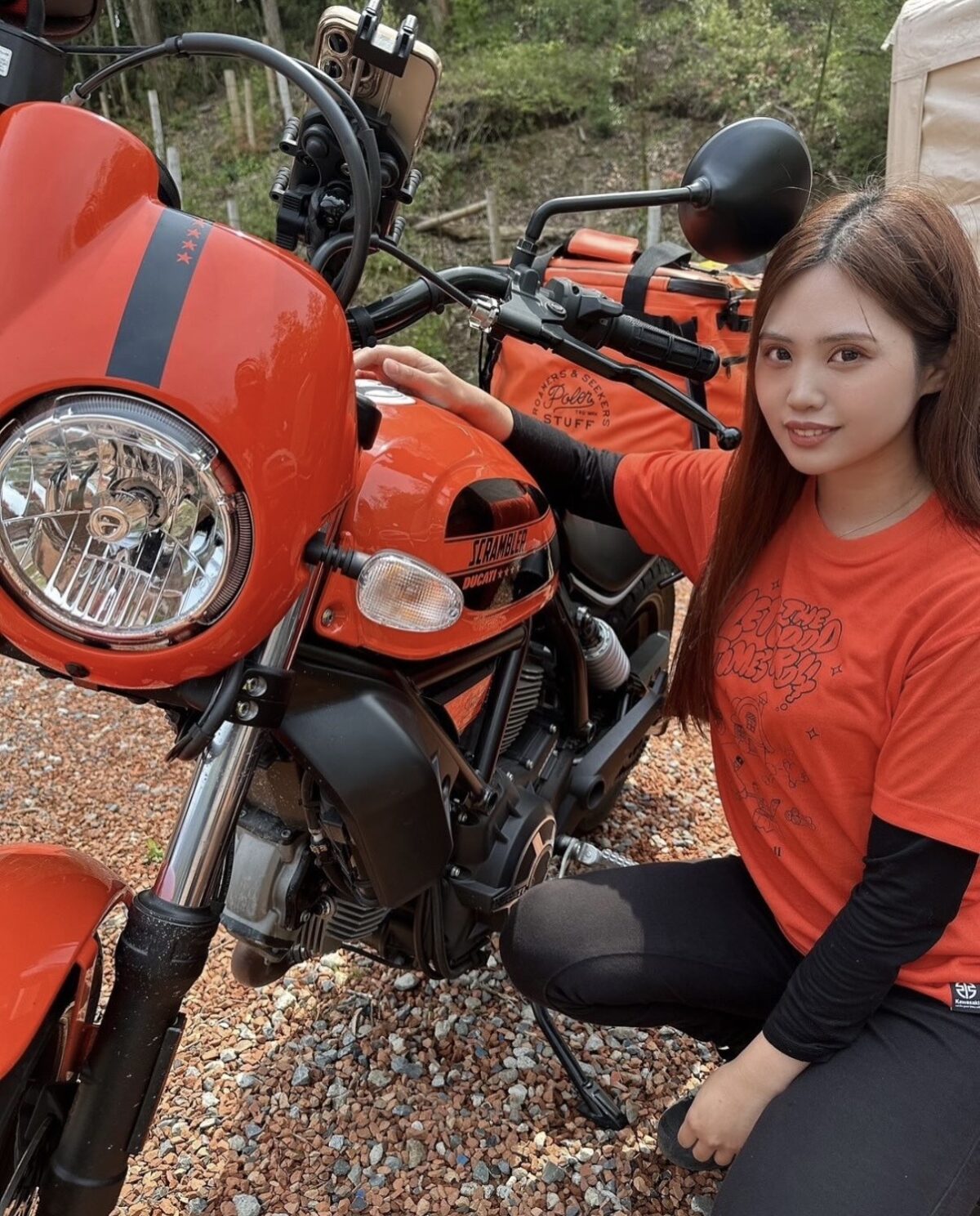 かわいさとカッコよさの両方があるデザインで、カラーバリエーションが多くて自分好みにできるところがいいですね。スクランブラーのグッズもカワイイ! あと、DUCATIのロゴが個人的ドヤりポイントです笑」