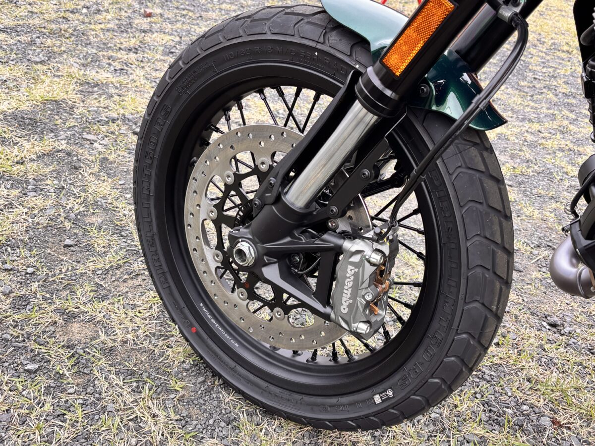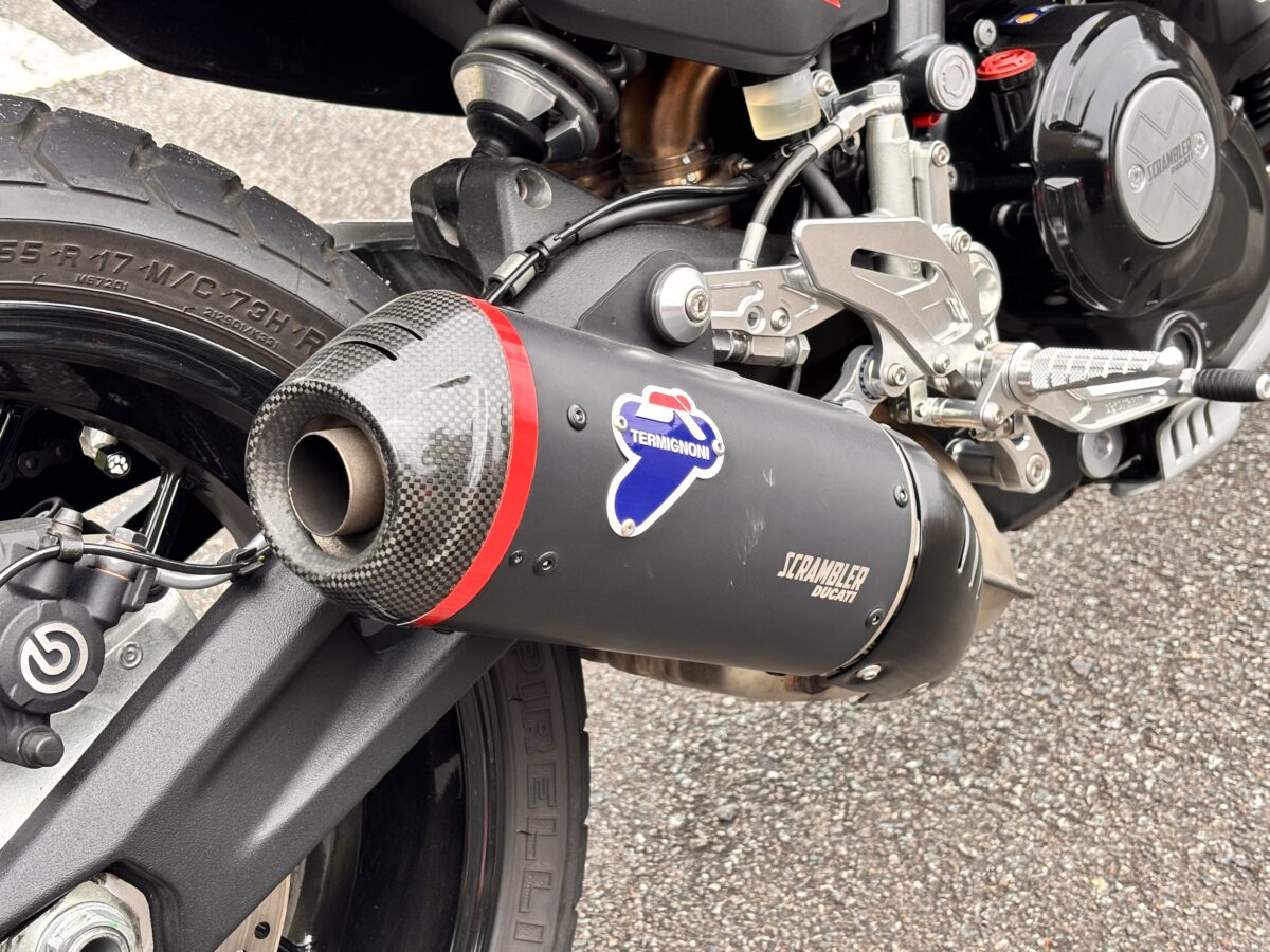 シリーズ中もっともスポーティで、フラットトラック由来の走りと外観を採用。テルミニョーニ製サイレンサーやクイックシフターを標準装備する