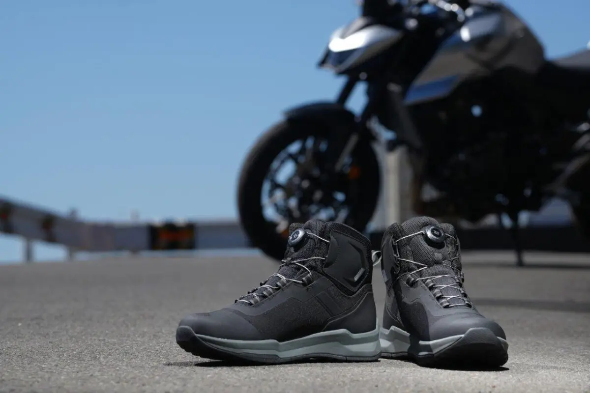 まずハイカットスニーカーやワークブーツのように普段から使えそうなことが大きなポイント。ライディング用シューズとしての機能はしっかりと持たせてありながらも、それほどごつくなく、しかもスマートなカラーリング。