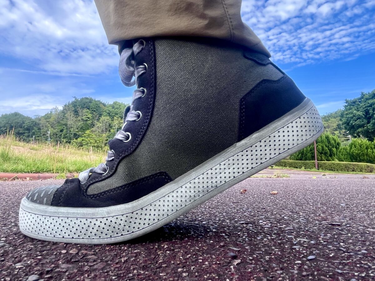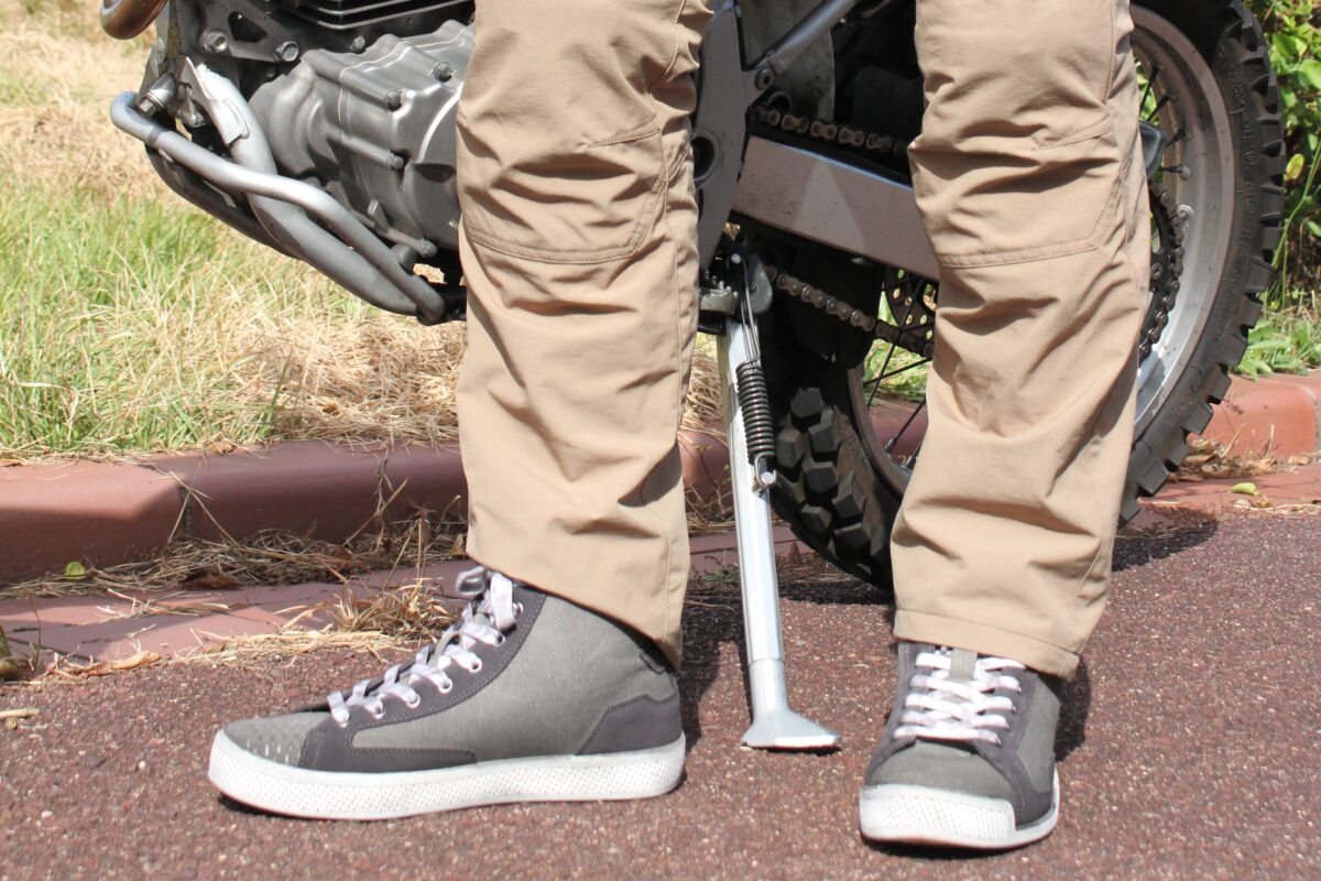 バイク用だと感じさせないカジュアルなスニーカースタイル。