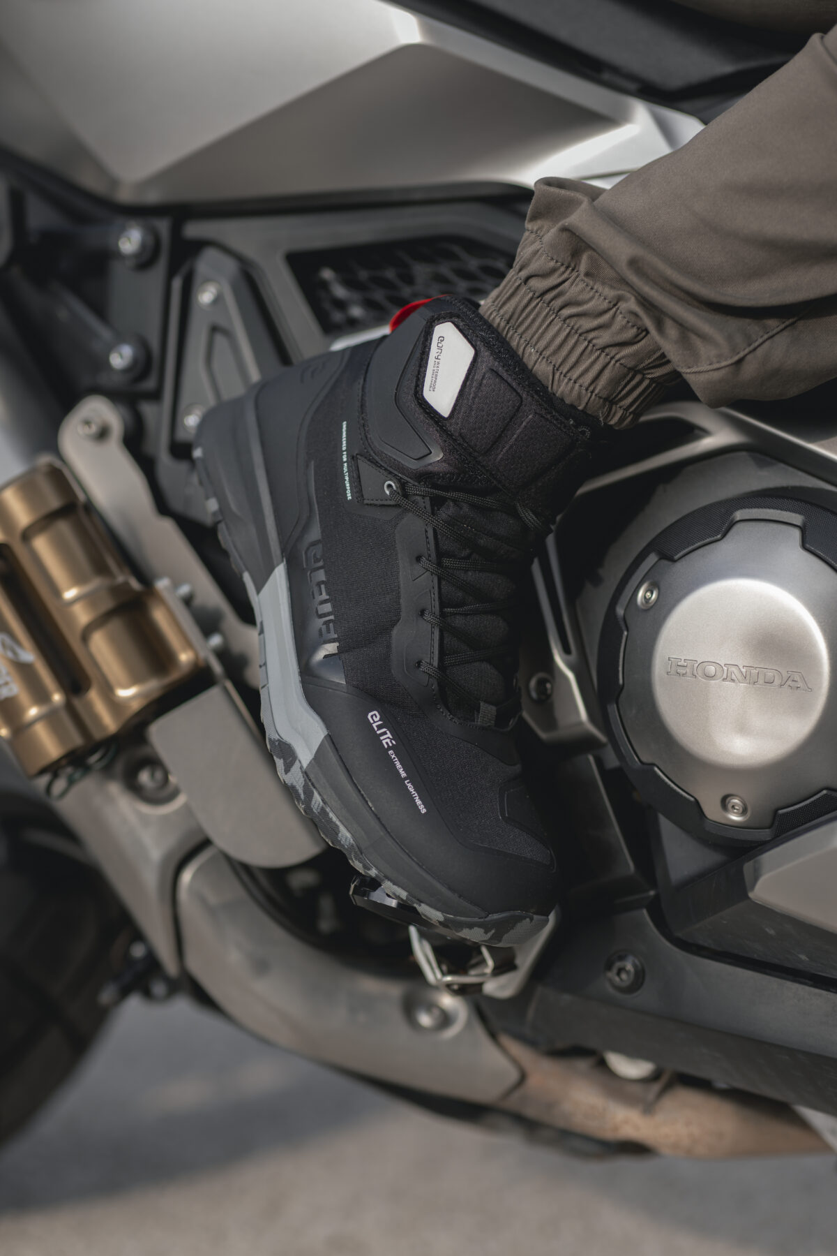 街乗りからツーリングまで幅広く使えることが最大の特長で、エレベイトはそうした「ライダーの日常と冒険に寄り添う」ことを目指したブランドである。