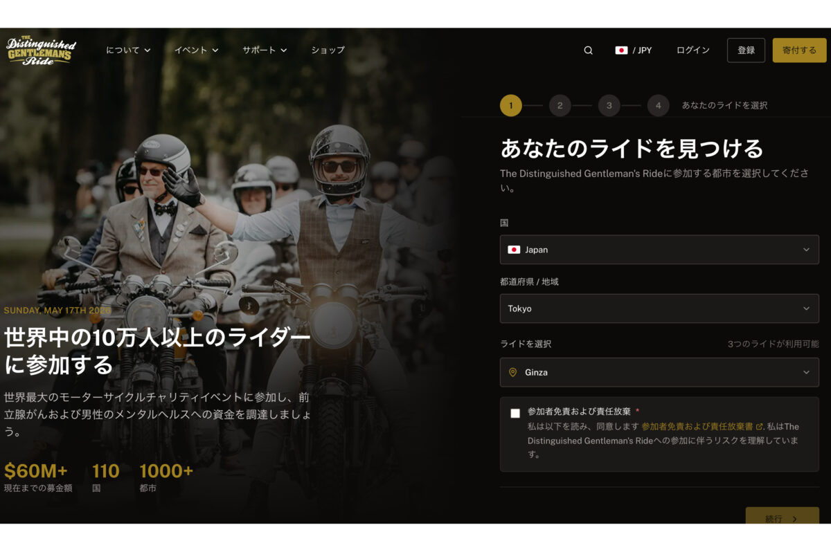 DGRの公式HPから「登録」を選び、国や地域を選んだら参加したい「ライド」を選択する。ここで「Ginza」を選び登録を完了すれば、「銀座ライド」に加われる。