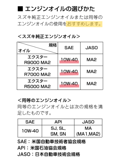 そもそもメーカーは10W-40を「指定」しているわけではない。「おすすめ」しているだけだ。