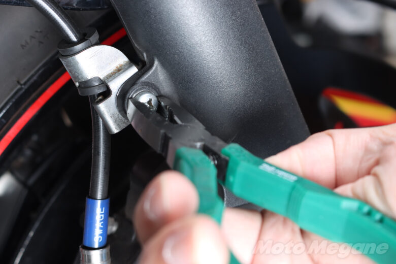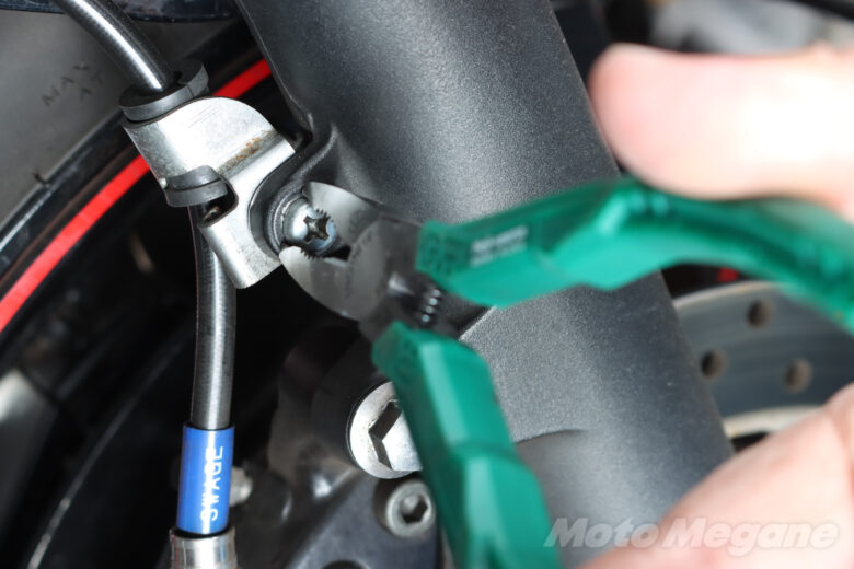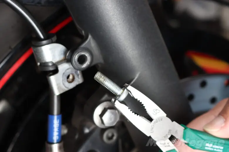 ボルト周辺のスペースも限られているので、顎の大きなロッキングプライヤーでは掴みづらいですが、ネジザウルスはコンパクトなので、取り回しは非常に良好!スムーズにアクセスできます。