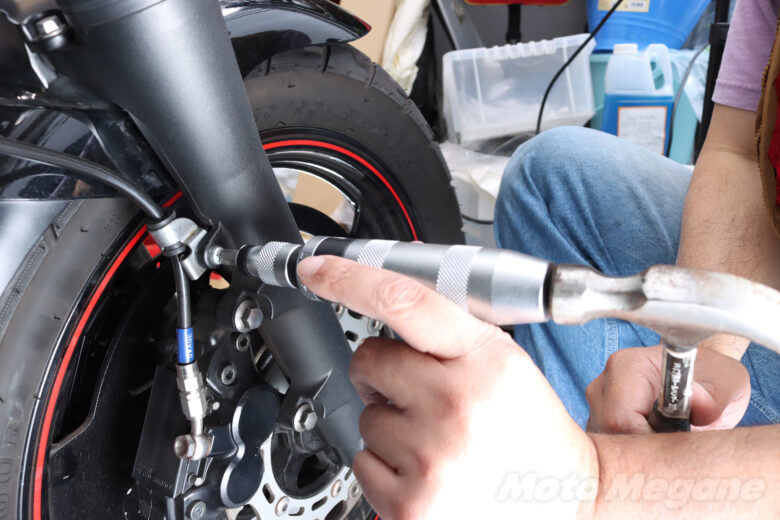 様々なサイズには試していませんが、スクーター用の8mmくらいのものは簡単に抜けました。