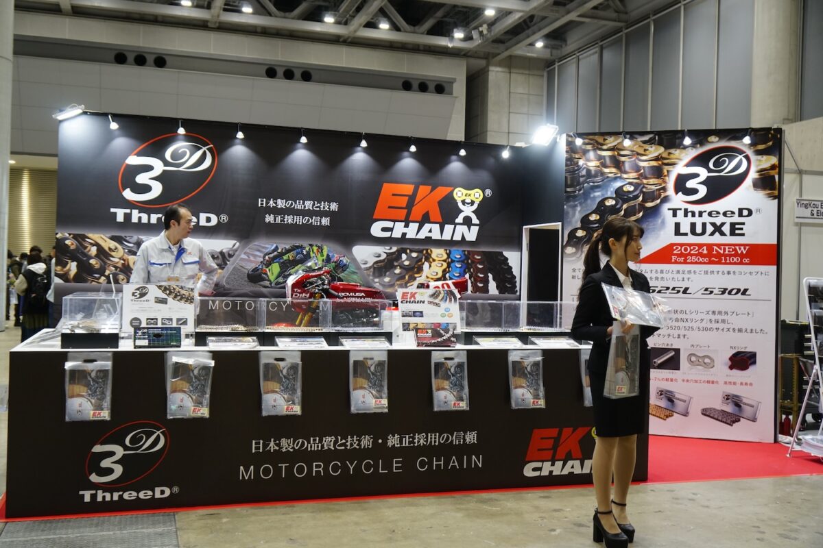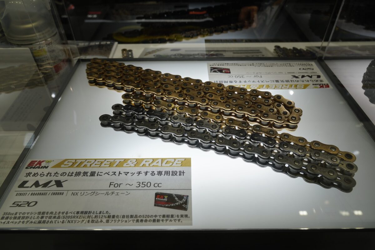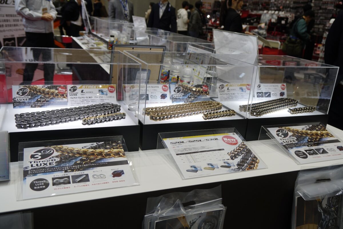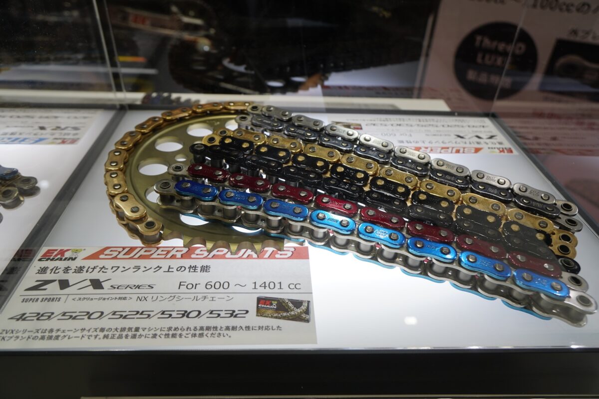 その江沼チヱン製作所のバイク用ドライブチェーンは、サイズ・グレード・カラーが豊富な『EK』と、次世代型チェーンとして開発された『ThreeD(スリード)』の2つのブランドが並び立つ。とくにThreeDはクオリティと性能面だけでなく機能美も高く評価され、発売以来カスタムパーツとしても人気を得ている。
