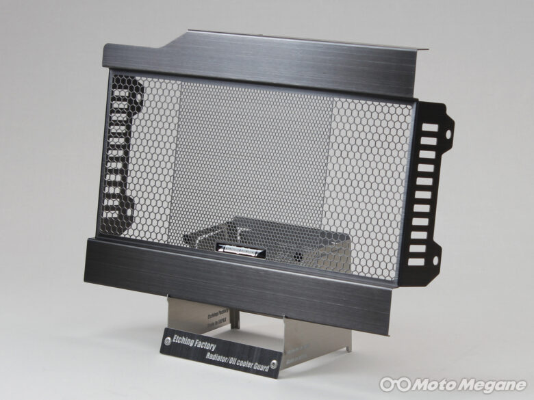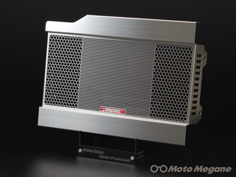 そんなラジエターコアを守るのがエッチングファクトリーのラジエターコアガードだ。幾度となくテストを繰り返し、メッシュパターンの配置メッシュラインの太さ、そして開口率はレースシーンからのフィードバックがぎっしりと詰まっている。