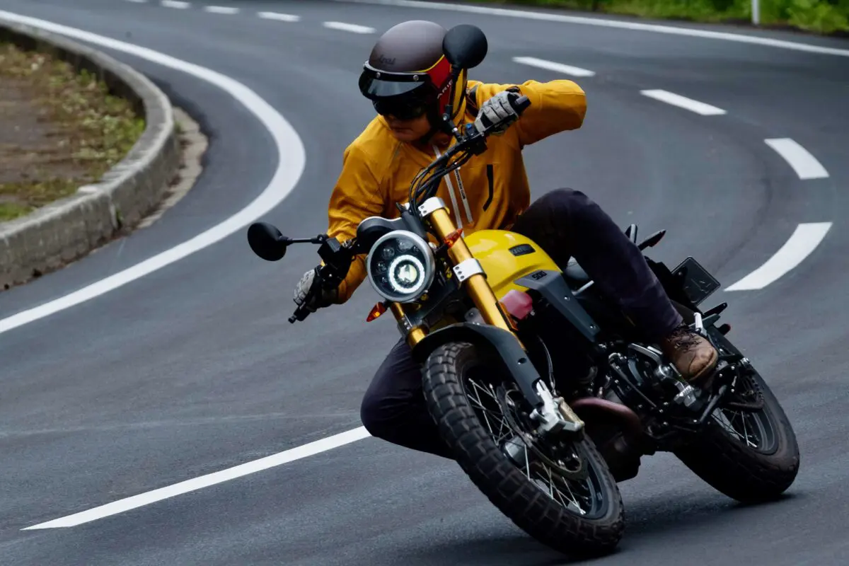 カジュアルなウエアの似合うスクランブラースタイルは見かけ倒しではなく、しっかりオフロード走行もできてしまうのだ。