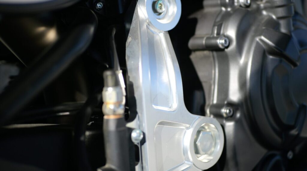 キャバレロ スクランブラーシリーズらしいアルミ切削のトリプルツリーやピポットプレートに加え、ヘッドライトカウルやシートまで細部の作り込みが美しく、全体的な高級感やクオリティはさすがのイタリアンバイクといったところだ。