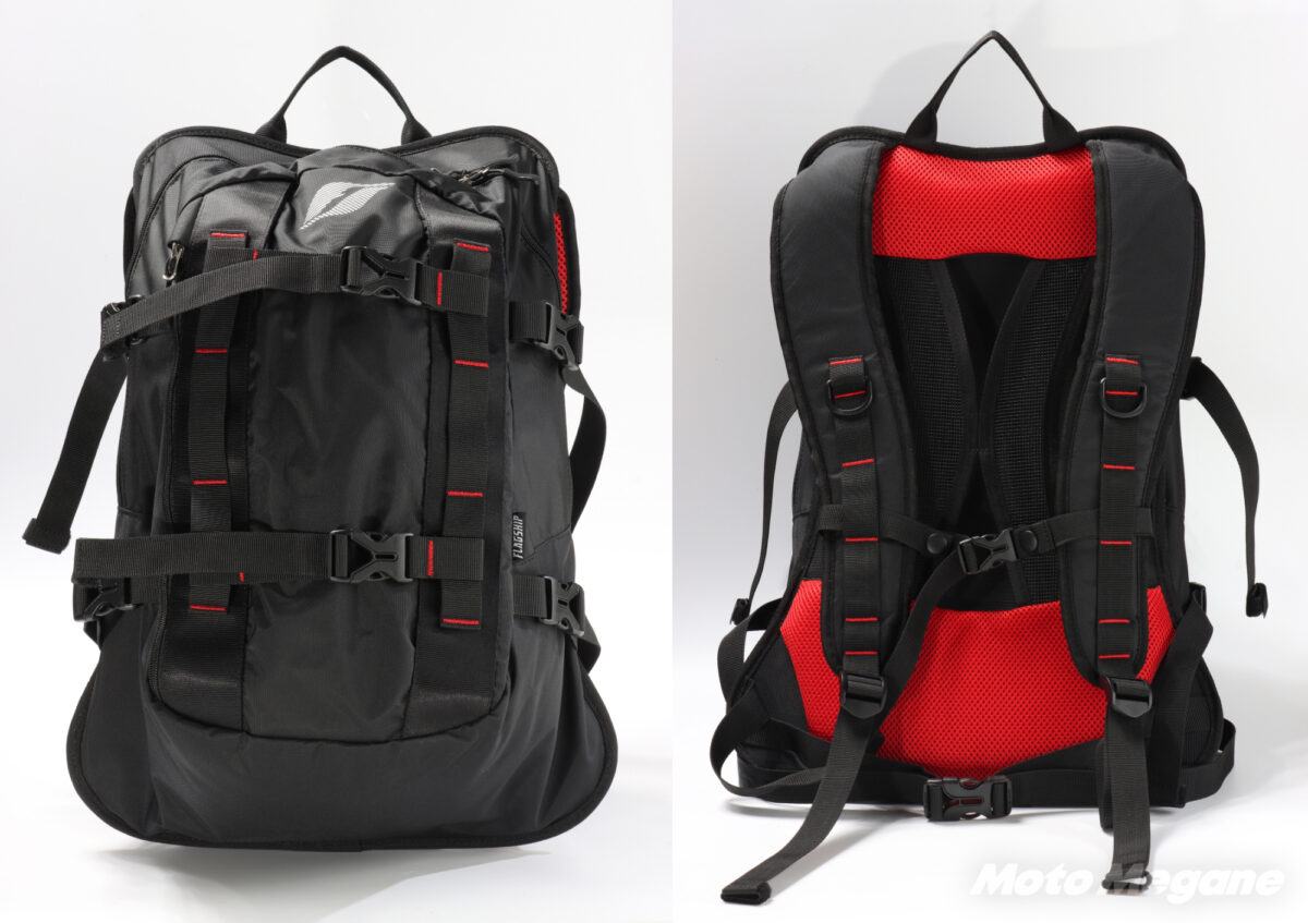 見た目はアウトドアメーカーのバックパックのようで、バイク以外の普段用としても使えるできるだろう。